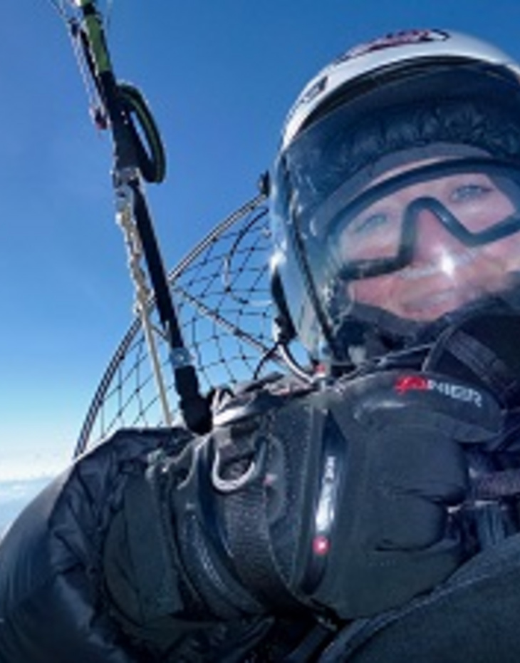 Karen Skinner was born in the UK and first took to the air in a microlight aged eight, with her uncle. After moving to Spain, Karen discovered a school offering a paramotor course and learned to fly, appreciating the advantages to flying a paramotor: "Within a coup...