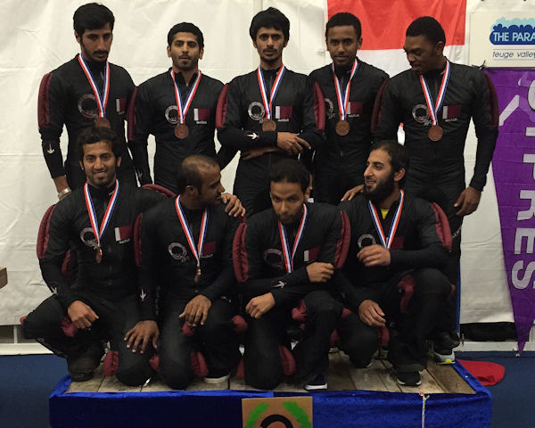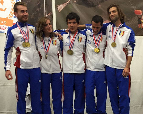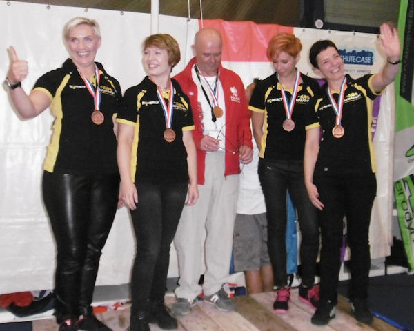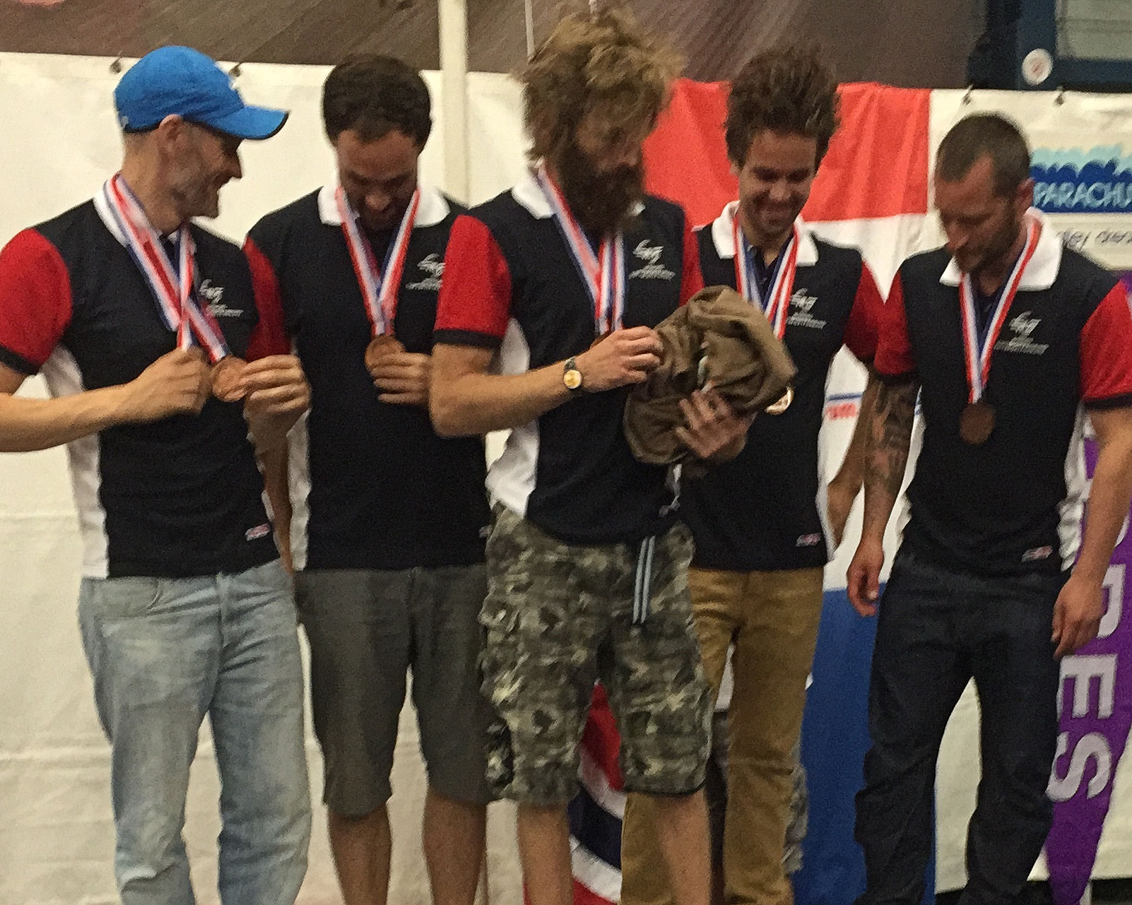 We then moved to the Formation Skydiving Medal presentation.  Here we had two podium's for 4-Way Female with Australia winning the Bronze Medal in the World Cup and Poland in the European Championships - and for 8-Way Qatar won the Bronze Medal in the World Cup and the Netherlands in the European Championships.  Formation Skydiving also had World Record breakers, the FRENCH 8-Way team broke the World Record on their second round jump with 30 points..