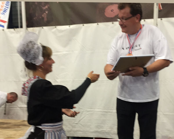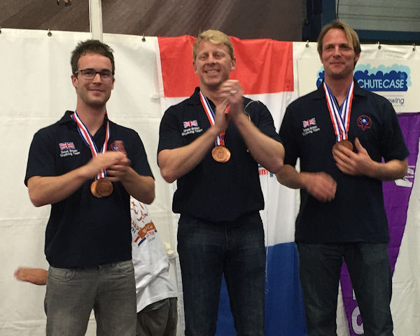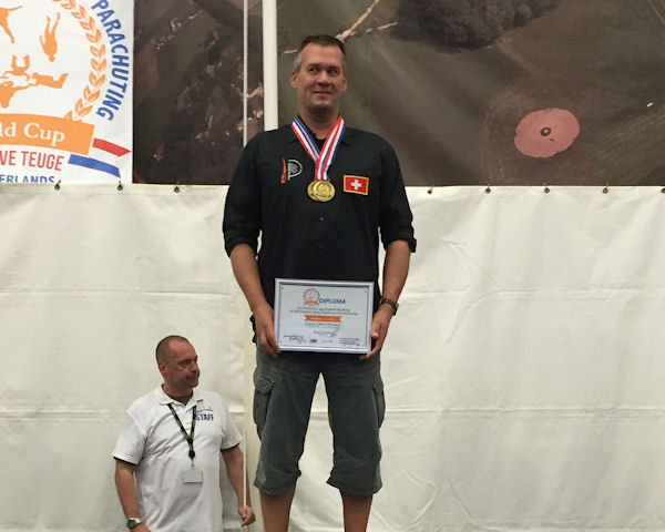The prizegiving started with thank you speeches to the Centre at Teuge for the hard work of all concerned with ensuring this World Cup and European Championships were a success.  Henney Wiggins opened the proceedings and acted as Master of Ceremonies throughout, dressed in the traditional Dutch clothes he had worn when he started the competitions;  jumping into the opening cerermony with the FAI Flag.
