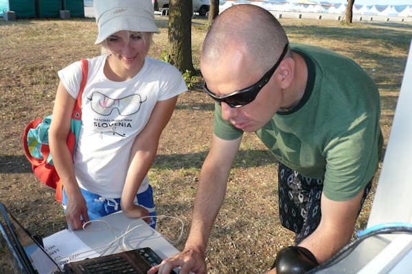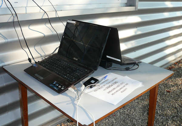 Practice jumps continued through the day and the dubbing station for OmniSkore was set up to work "automatically" - the cameraflyer uses the card reader to download from his memory card - following the on screen instructions. After the first time it seemed to be working well for all. Ted and Tim Wagner were on hand to help with any questions.
