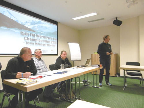 Michael Egger explained that Para Ski now had a new form of nominated jury as defined in the Para Ski Competition Rules.  The Leader of the Jury is the FAI Controller, having completed his work with the start of the competition, he could then take on the Jury role.  The other members of the 4 man jury would be selected from Head's of Delegation present on site, first with the requirement to take someone from the IPC July list if present, then one other Jury member and an alternative Jury member - to give the flexibility of removing a Jury member if his delegation was involved in a Protest.