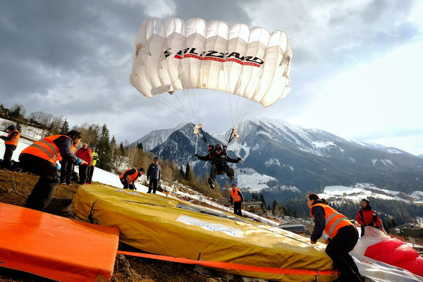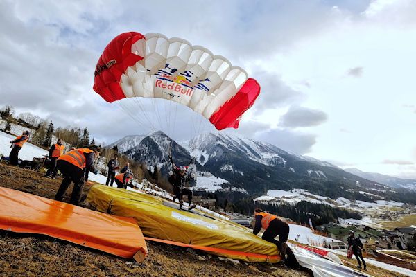 Yesterday also proved to be both a lucky and unlucky day for one competitor, Hielke Bootsma, the Netherlands.  On his third jump of the competition, his canopy broke several lines and though he continued to fly it and landed safely it is seriously damaged.  So lucky and unlucky as he will not be jumping in the competition any more.