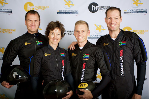 Twitter Facebook 13 Oct 2015 1st FAI World Indoor Skydiving Championships - Prague, Czech Rep. 21 - 24 October 2015 - South African Delegation SOUTH AFRICA FORMATION SKYDIVING 4-Way Open ClaireKingDirkVenterColinRothmanPaulMarcellin