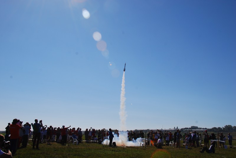The highest altitude achieved during the competition was by Robert Kreutz, from the USA. His S1B rocket reached 753m in the altitude competition, as measured by its onboard altimiter and verified by the competition judges. Rockets in the S1B class can reach verticle velocities of 200km/h, and weigh as little as five grams.
