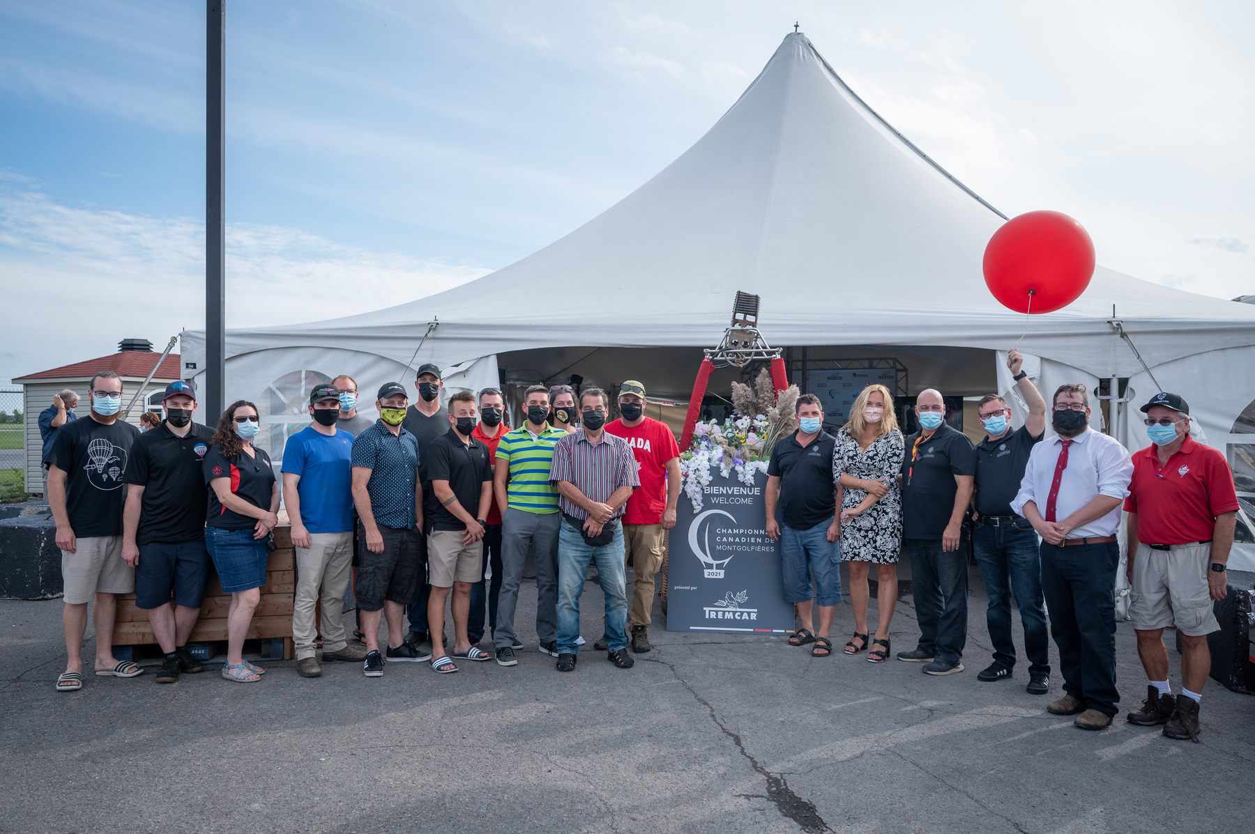 Pilots and officials pose for a picture following the Opening Ceremonies. Credit: Jacinthe Trudeau/International de montgolfières