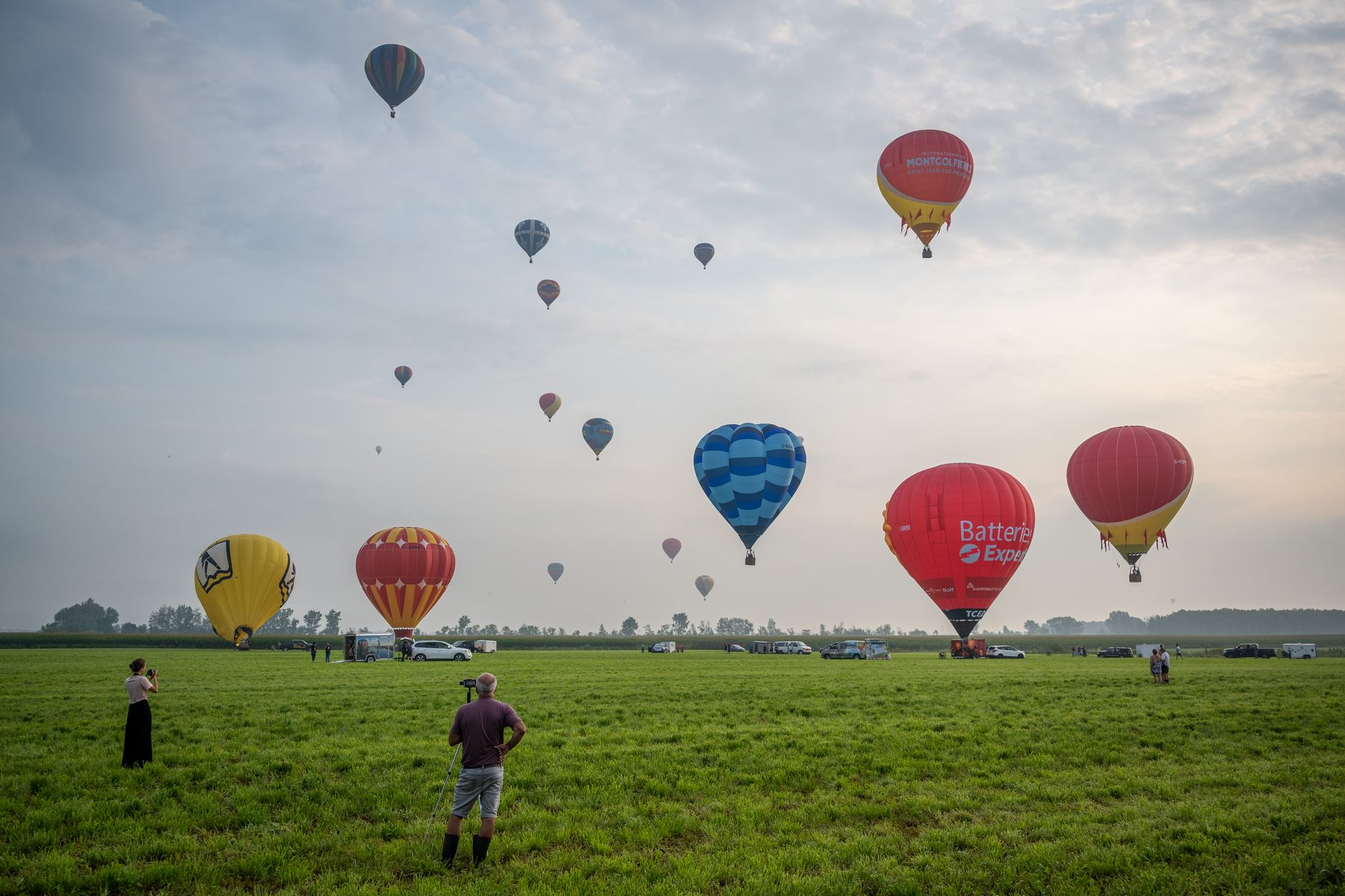 Pilots rush to launch into a spectacular sky on the final flight of the 2021 Canadian Championship. Credit: Bertrand Tougas/International de montgolfières