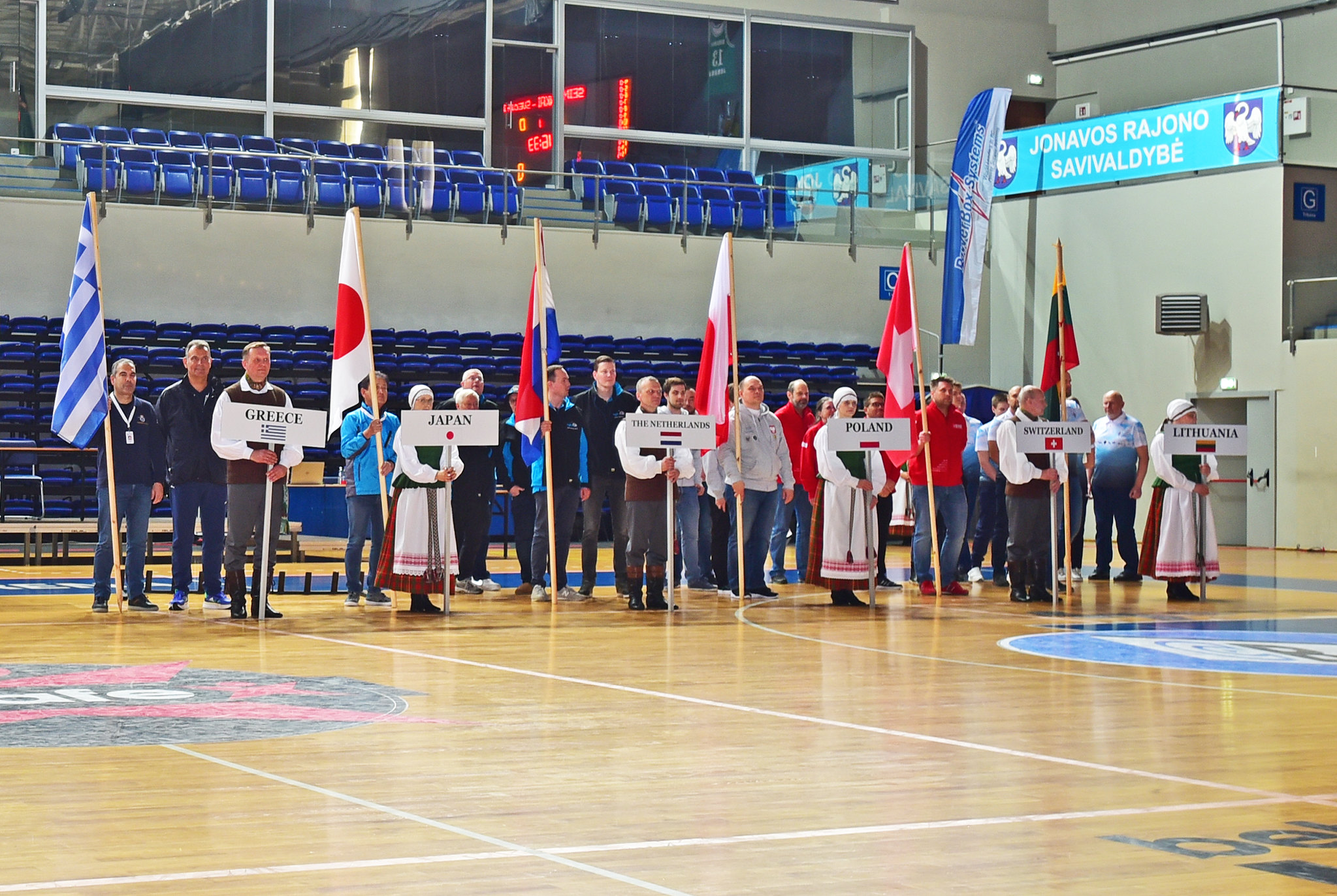 The Opening Ceremony took place yesterday Sunday at the sports arena and was attended by Local Officials. After the parade and the speeches, a local group presented traditional Lithuanian dances. The ceremony was preceded by the Judges Training Session and the Team Managers Meeting.