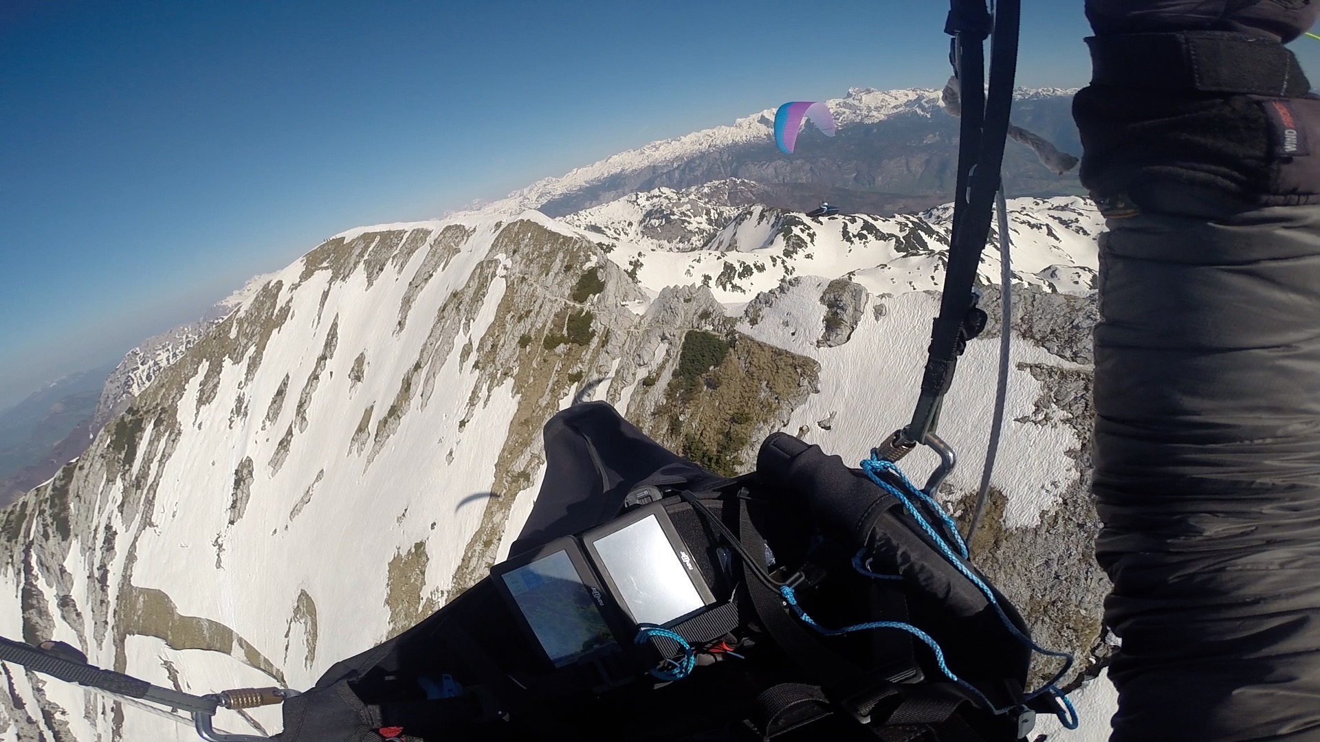 For me, the most difficult part was actually right at our turn point further down mont Talvena. I was with Jošt Napret flying at the edge of the mountain tops. And did not know what is happening, the wind was kind of N and it seemed like we need to decide which side to fly. Where I was expecting extremely strong valley breeze there was none but I felt N wind. Jošt caught a thermal that seemed like its coming from the north but I was just a few gliders too low and stayed on the S side of it. With no lift and getting lower, I was becoming desperate so I went to the side of the mountain where, by previous experience, I should literally be blown over the mountain by the valley breeze but there was none. Nervous because the situation was strange and no thermal I keep going to the turn point low thinking this is the end and still waiting for the valley breeze to appear and push me in the direction of mount Civetta. I was thinking I will land here. After making the turn point going back to the ridge I found a week thermal and stick with it hoping to make it back to the top of the mountain. Luckily it worked. A year before in this part, one friend was blown over the same ridge by the valley wind and was on the ground in minutes. Strangely there was no wind here this day.