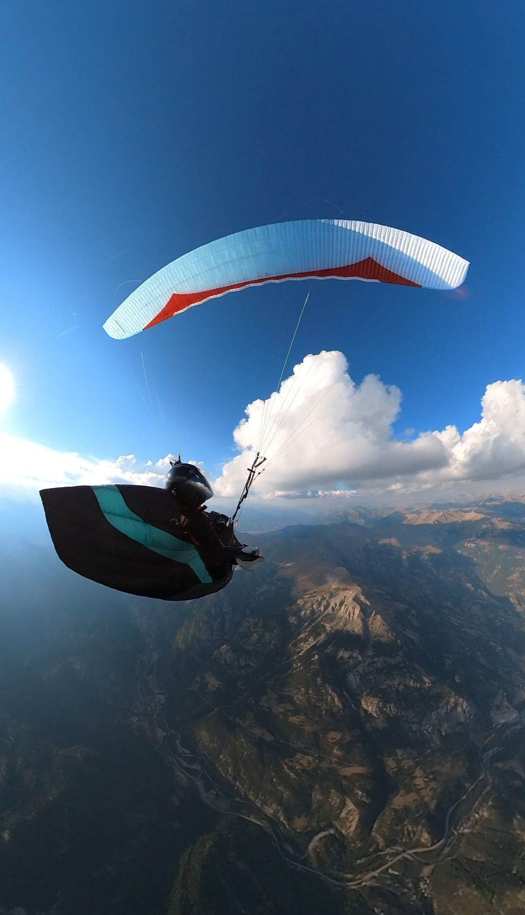 The take-off is quite complicated at Col Izoard and on this day there were a lot of pilots in this small place. I missed a take-off and after that, I got a lot of knots in my lines, at one moment I thought I will not even be able to take off. But after 20 minutes of work, I could get in the air. I was the last one to take off on this day and I was really stressed at the beginning. After I got over my stress I kept the cold head flying at my rhythm, not too fast but trying not to do mistakes or stupid choices. Conditions were perfect with almost no wind in altitude, only a strong breeze, and the climbs were good, up to 5m/s in the afternoon. As always I did some low points in the breeze around Motte du Caire but nothing too sketchy. Did my highest base in the afternoon in the Blayeul. In the morning in the Queyras and passing the Écrins I also was high.