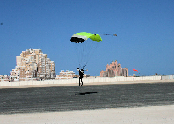 The Accuracy Landing and Canopy Piloting DZ is here on the Dubai Palm giving the TV crew plenty of opportunity to practice filming jumpers.