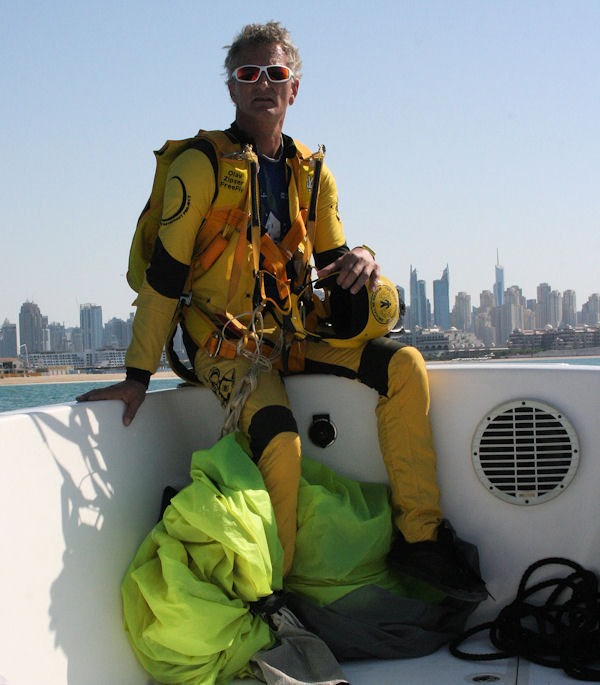 To get from the Crescent DZ situated on the top arm of the palm it is necessary to ride in one of Skydive Dubai launches.  The DZ is being controlled by Helmut Bastuck and Sandrine from Skydive Dubai (and her dog - Romeo)