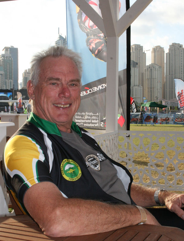 Our President, Graeme Windsor was on the Drop Zone this morning for the first widi load, now that his gear has arrived in Dubai.   Although he could not jump he was able to use the time to catch up with old friends.