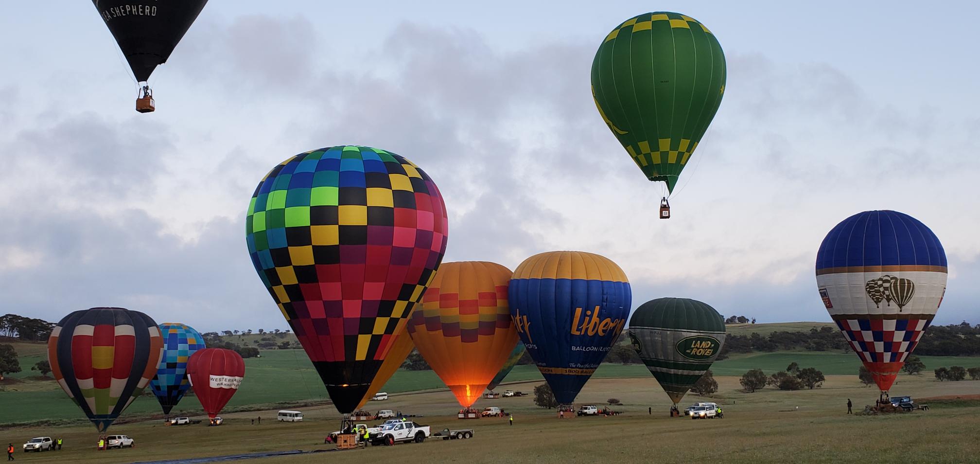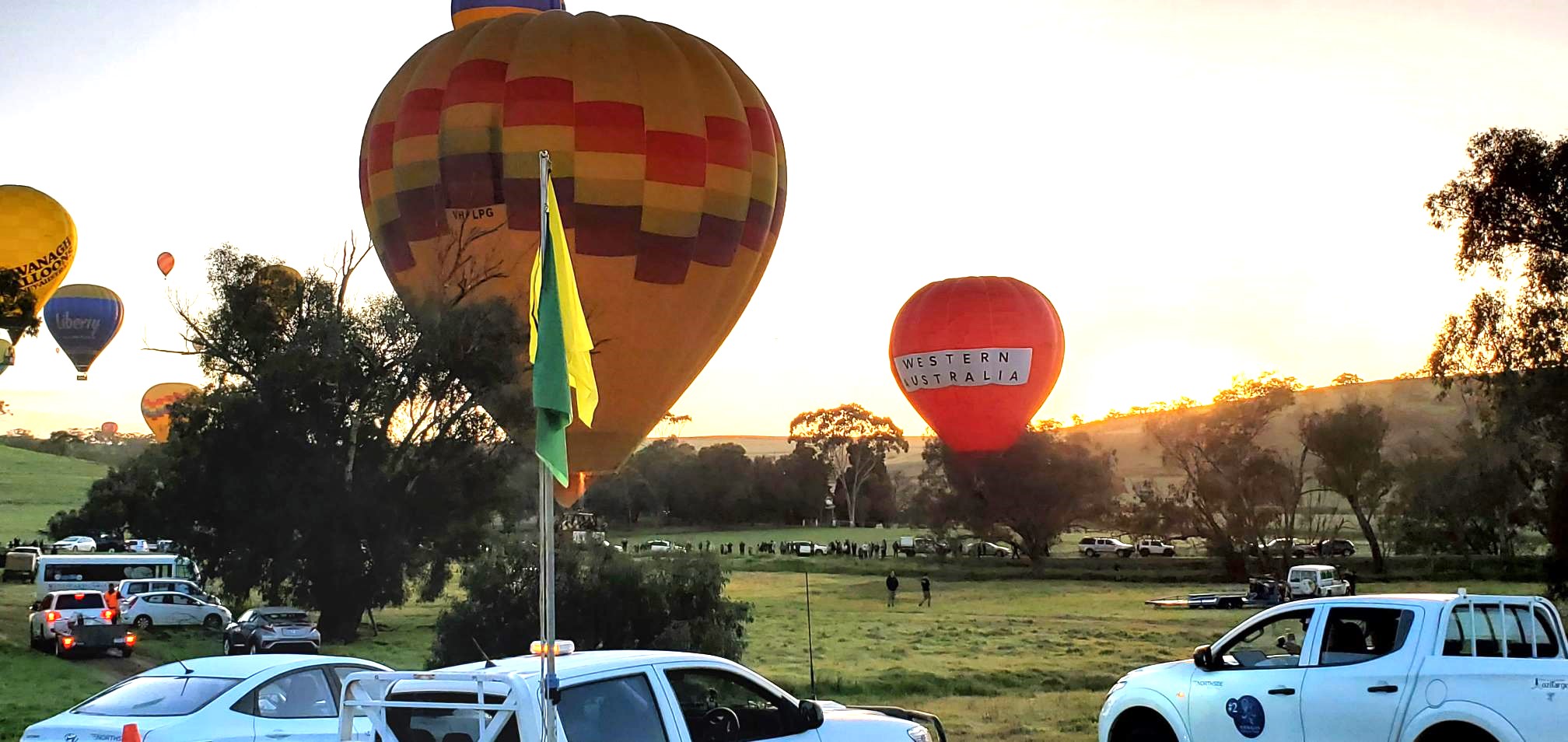 After a rainy and windy start on the first day of Championship flight opportunities, the 5th FAI Women’s World Hot Air Balloon Championship (WWHABC) now has two flights in the books. The weather in Northam, Western Australia cooperated on Day 2, allowing the competitors to get into the air.