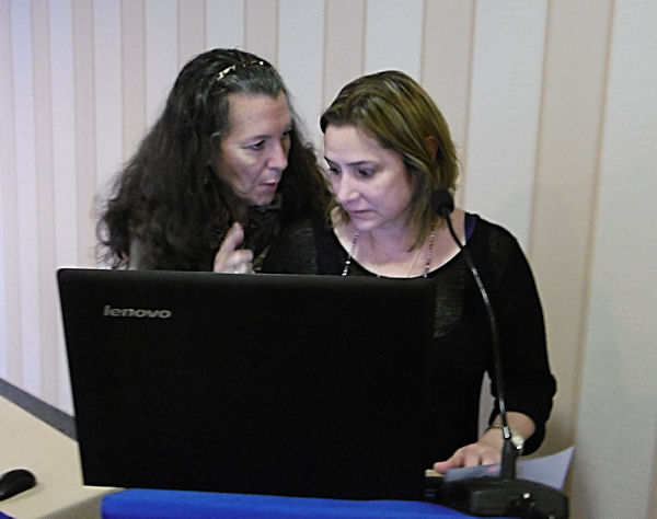 | Marylou Laughlin and Rina Gallo finalising a few points. |