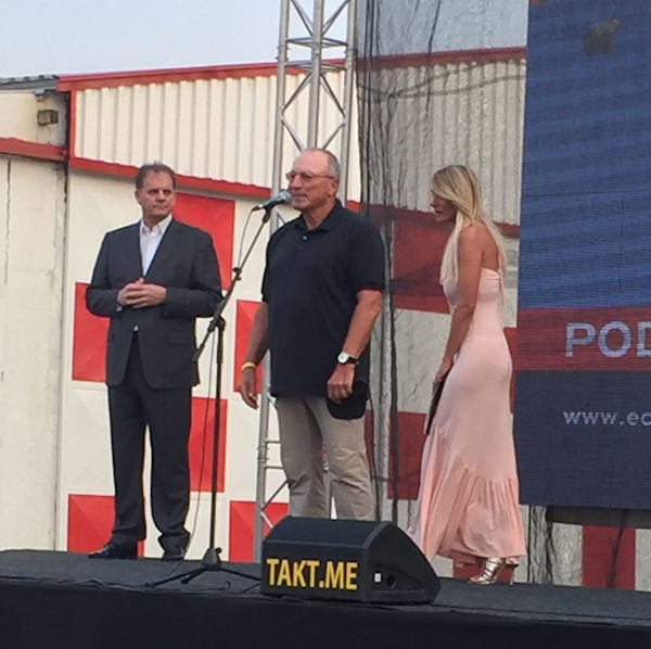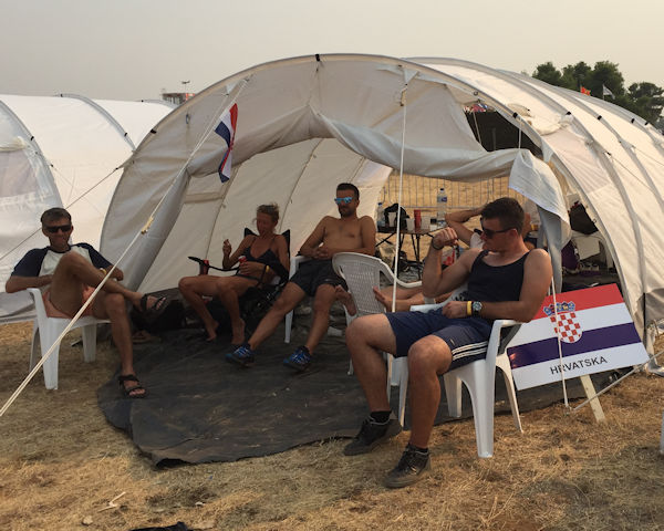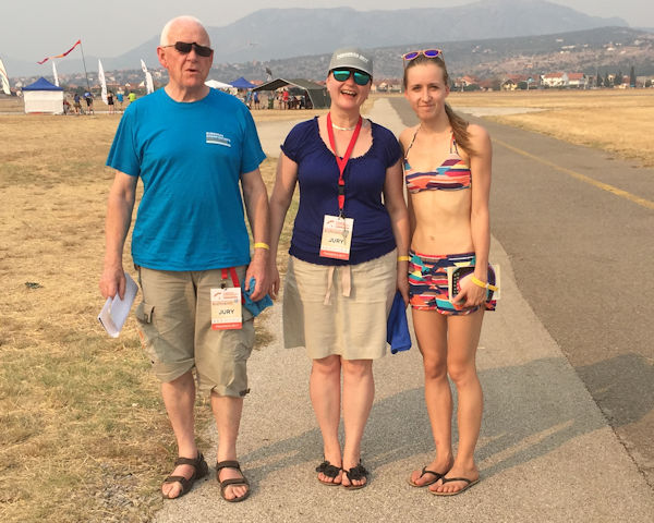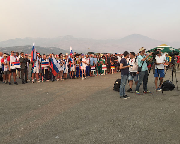Yesterday evening the competition was officially opened - following an airshow when local jumpers put on a demonstration jump with smoke and the National Flag and FAI Flag flown into the arena. There then followed a display of a variety of aircraft and a stunning display of flying skill. The competitors, all smartly dressed in their team uniforms formed in a semicircle behind their national signs (in Montenegrin) in front of the stage. We were then treated to a speech of welcome from the Mayor of Podgorica who said how proud they were to be hosting this European Championships and thanked the organisers for bringing this event to his town and country. He said he would welcome the opportunity in the future to repeat this with the World Championships. He was then followed by Dr. Rainer 'Exi' Hoenle, President of IPC (and here as an additional judge) who commented that he liked to go last in all these ceremonies, as he only has to echo the thanks of the previous speakers - and so simply declared the Competition's Start.