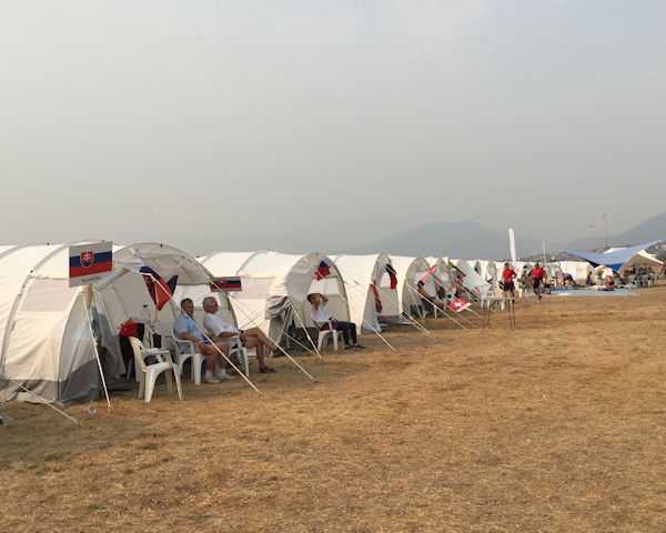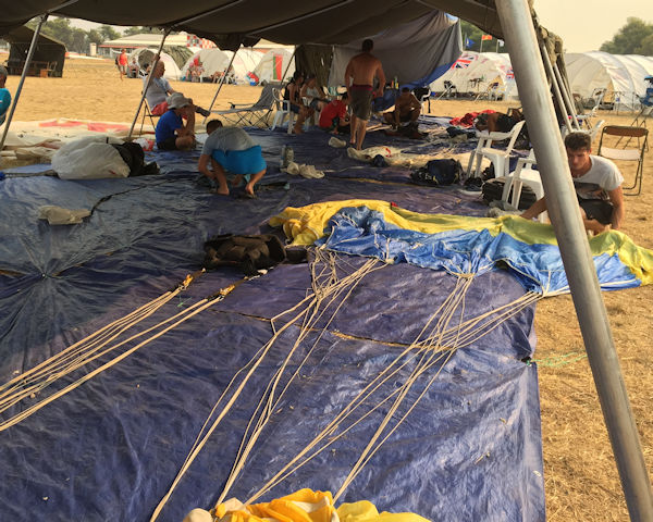 The first load would consist of the rejumps from yesterday's Female Accuracy, 7 in all. Three for round 4 (France, Montenegro and Poland) 1 rounds 2 and 4, Russia and 1 for rounds 2,3 Poland). We would then move on to the first team for Male Accuracy Round 1. At 8.45 a.manifest call lifted everyones hopes by putting Female Style on Standby. On talking to the Chief Judge he says that they hope to be able to commence at mid-day; at the moment the visibility is still too bad and the air smells of smoke - memories of Kolomna, Russia in 2010 are with some here.
