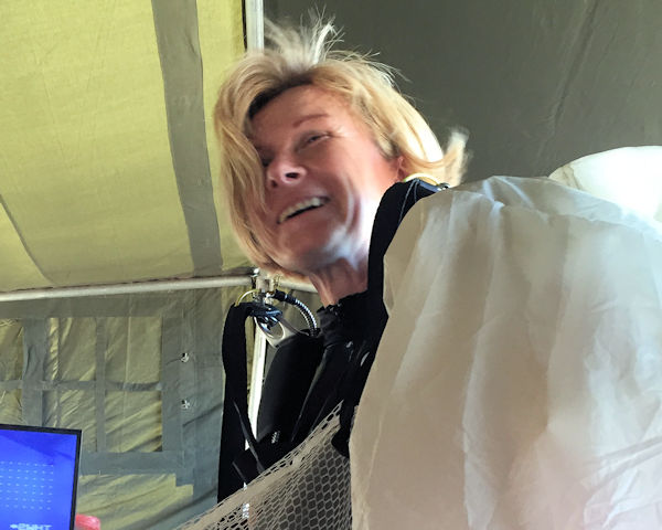 7.00 am Team Leaders' Meeting in front of the Manifest when the plans for the day were announced. Complete the 1st Round of Female Style, complete Round 5 Male Accuracy, then switch to Female Accuracy and Male Style. But, as all plans this week, it had to change during the Widi load when the winds went over the limits for accuracy.