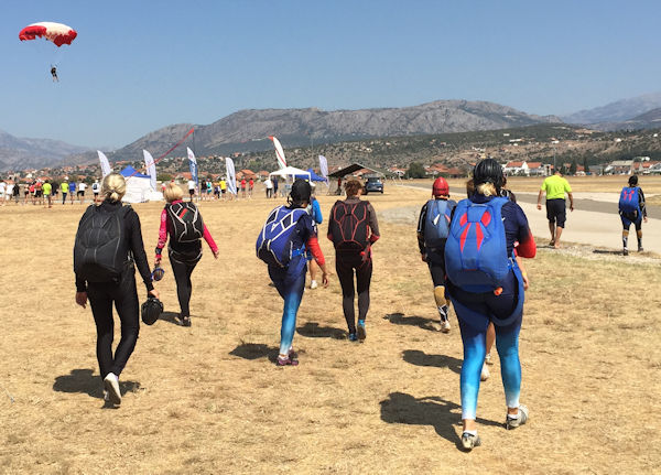 17.50 pm Manifest announces that once Round 6 Male Accuracy is complete all jumpers are released for the day. The buses will arrive at the DZ at 19.00 to go to the Hotels. Tomorrow morning, Team Leaders' Meeting in front of the Manifest at 7.00 am. By the end of jumping we still have some rejumps to complete Male Accuracy Round 6.