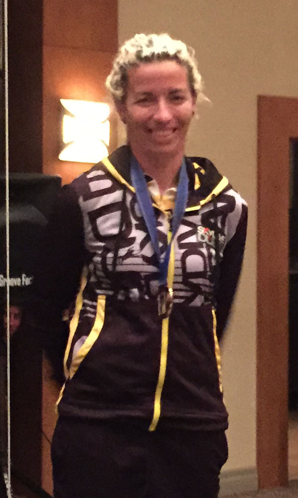Buzz Bennett, our friendly meet director, acted as the master of ceremonies, and asked Mrs. Galle to present the medals for Speed.