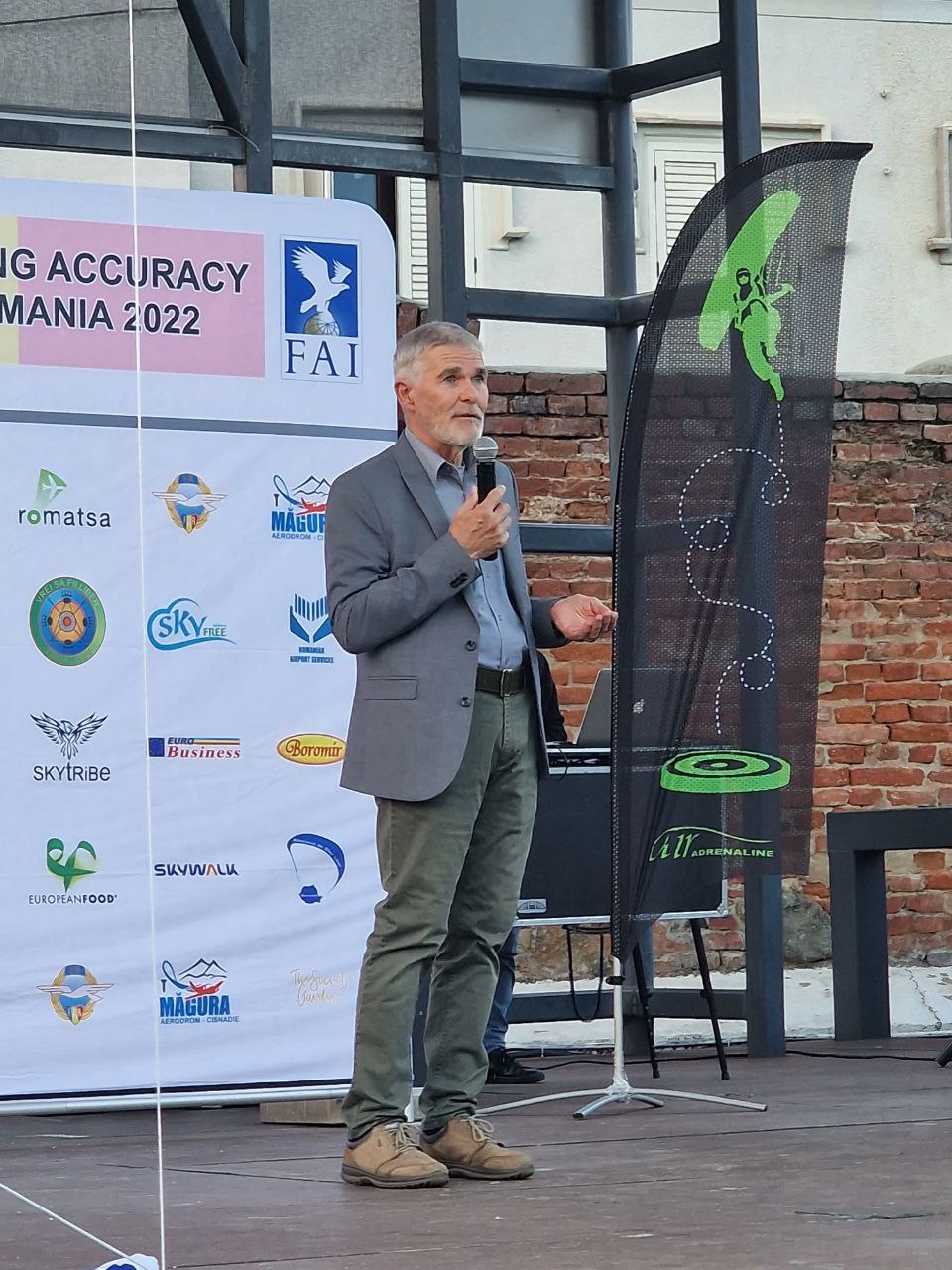 In the photos below the meet director, Valentine Popa from Romania, and the FAI Jury president, Andrew Cowley from UK are greeting the participants and declaring the event to be officially open.