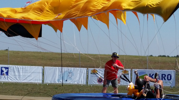 Just on lunch time the winds had picked up sufficiently to warrant an accuracy stand-by, but being within limits to allow the style jumpers to continue. So far we've completed the first round of Male Style with three rounds completed for the Females. The juniors in both Male and Female Style have each completed 3 rounds, with 2 rounds each for Junior Accuracy. Meanwhile the Female Accuracy has just one round under its belt.