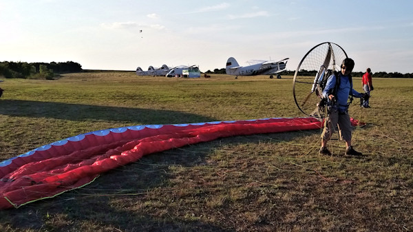 | Jury: Looking pretty 'armless! John Smyth, Liam McNulty (Pres), Igor Van Aperen | Paramotor preparing for take-off |