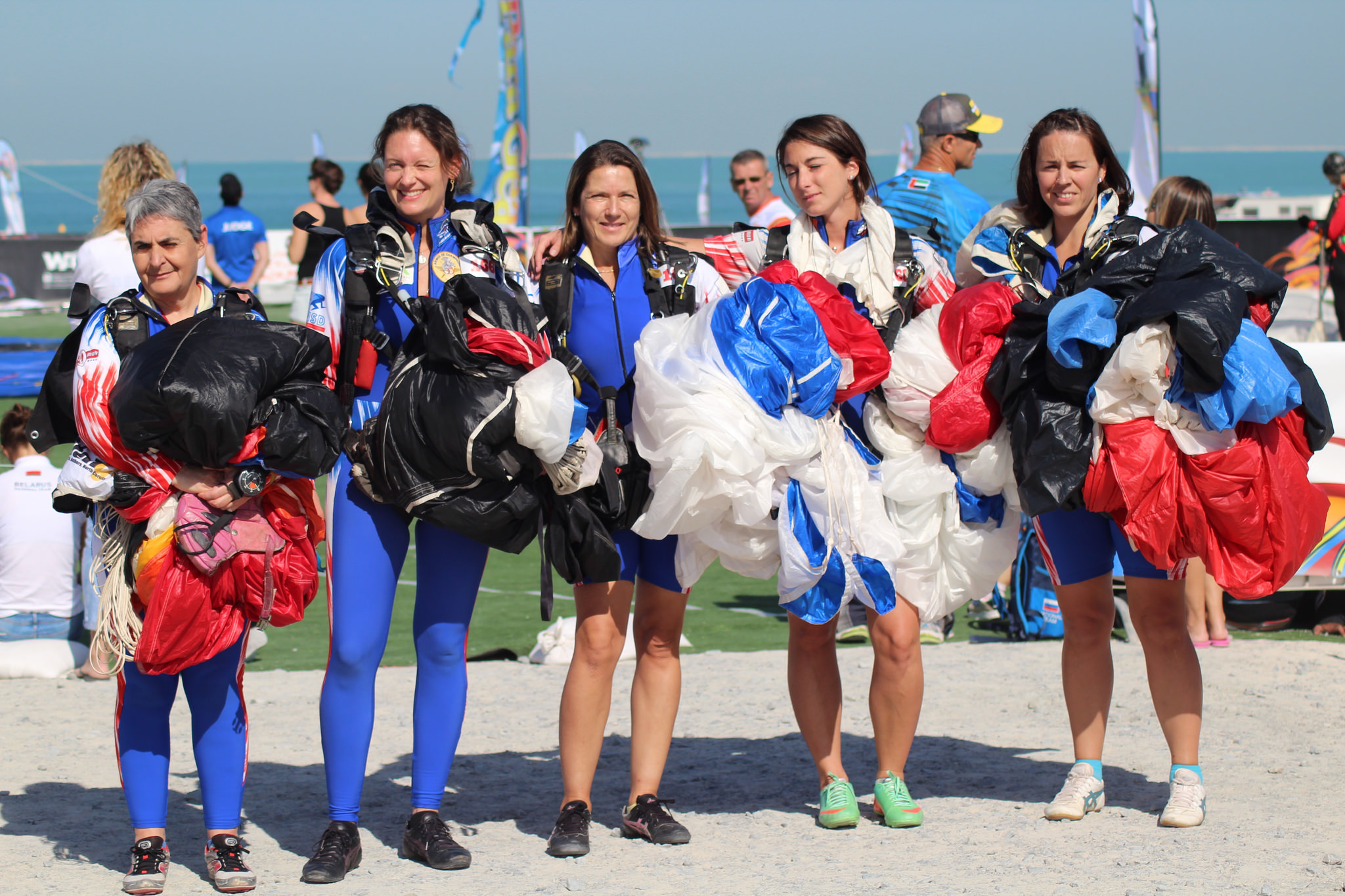 "The air is really moving," said Deborah Ferrand, the first of the French team to land, with her heel just 1cm from the 2cm target. "It's very challenging here because we can't see the conditions on the landing target until we're over it."