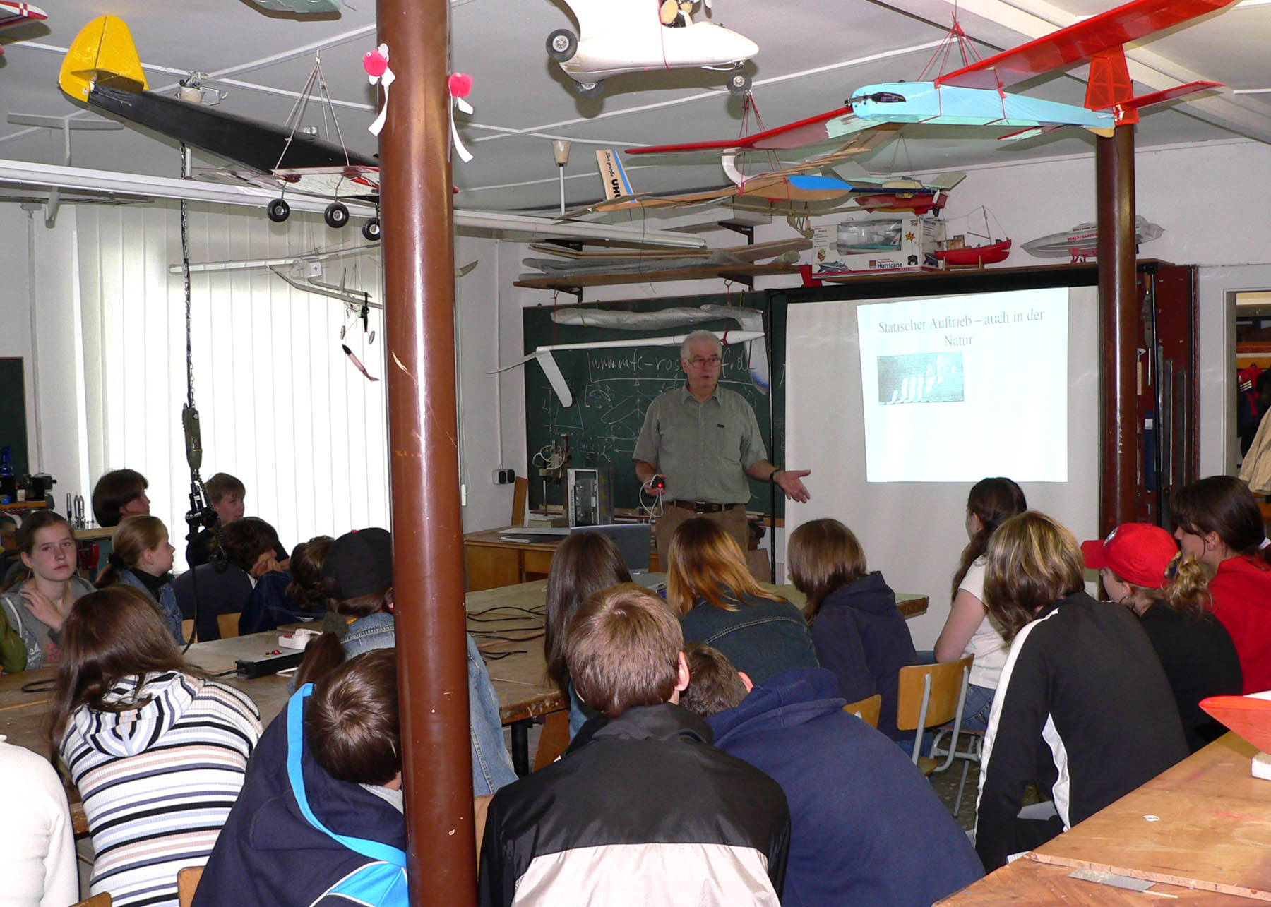 Initially inspired by the event Aeronautics and School, which was organised by the German Airsports Aeroclub (DAeC) in Hamburg in 1992, the Rossendorf Aeromodelling Club has been successfully offering the Aeromodelling and Aeronautics programme to schools for more than 25 years. The objective is to provide students with the opportunity to discover the world of aviation and model aircraft in a fun and interactive way.