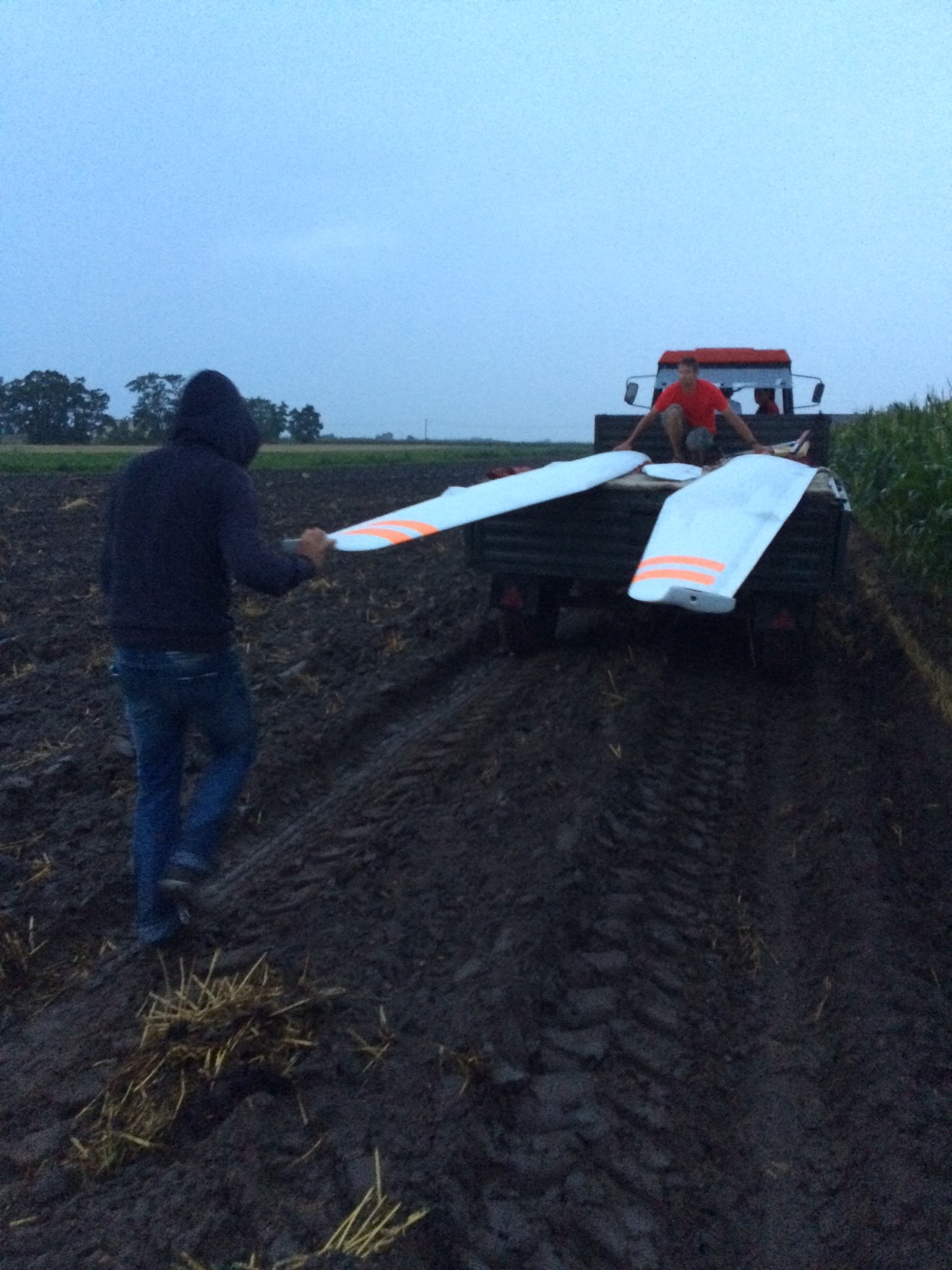 and a tractor was brought up to carry the wings to the distant road: