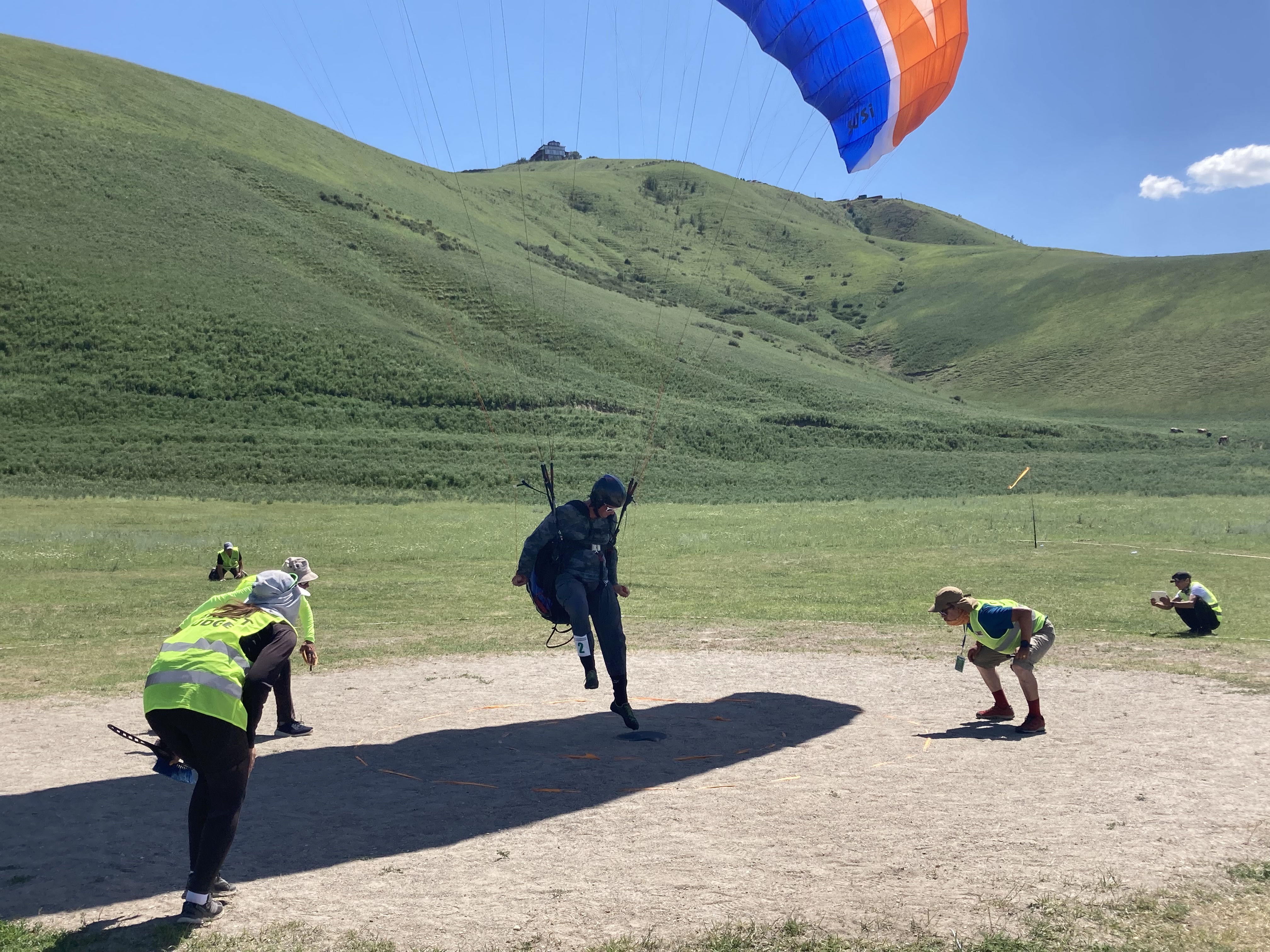 And at 14.00 the weather changed at take-off so that the pilots could not reach the target from take-off. The top 10 pilots had not flown yet and they had to change to a take-off closer to the target. After they had flown there was a tie for silver between Nawaf Al-Rehaili and Mohsen Mansouri, both had 47 cm. So it was time for a tie-breaker flight. Nawaf Al-Rehaili came to landing first and made 068 cm. Mohsen Mansouri made a calm approach and 008 cm so the silver medal will travel with him to Iran.