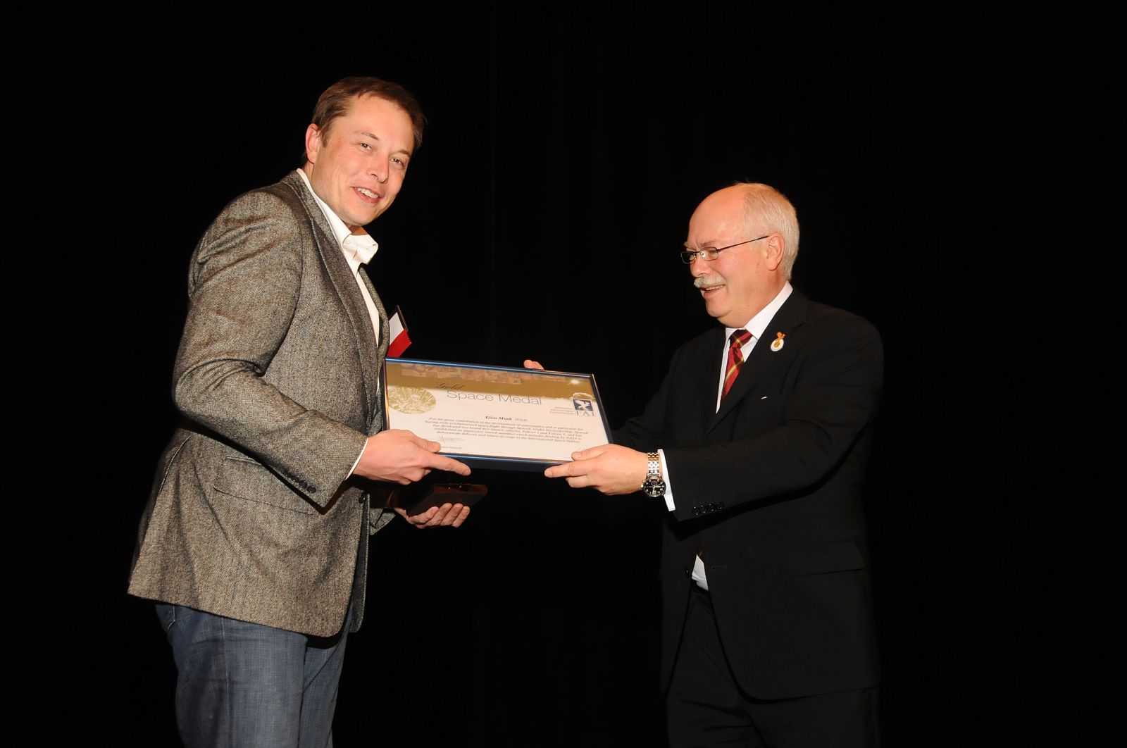 Aeronautic and astronautic figures Barron Hilton and Elon Musk have been presented with prestigious FAI awards by FAI President Dr. John Grubbström at the recent NAA 2010 Fall Awards Banquet.