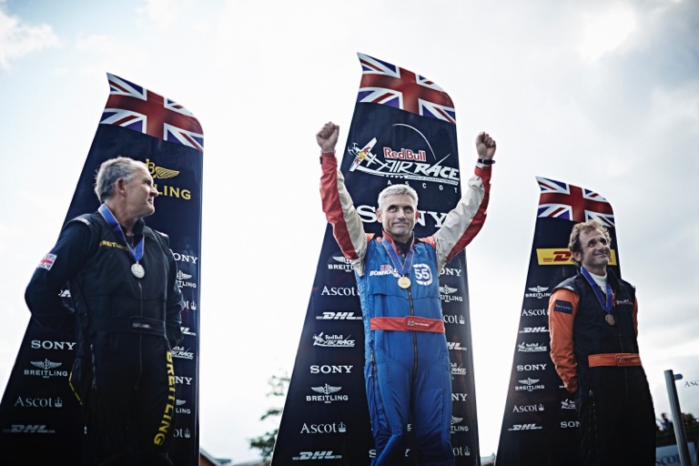 Britain’s Paul Bonhomme and Nigel Lamb won first and second place at the Red Bull Air Race at the Ascot Racecourse on Sunday, sending a sell-out home crowd of 29,000 spectators into a frenzy with thrilling performances in challenging windy conditions. It was the 15th career victory for Bonhomme in his 55th race and also second win of the season worth 12 championship points that helped him cut the world championship lead of Hannes Arch from 13 to just two points. There are three races left in the eight-stop season. The Austrian finished a distant eighth on Sunday. Nicolas Ivanoff of France got his first podium since 2009 by taking third place with a time of 1:11.884.