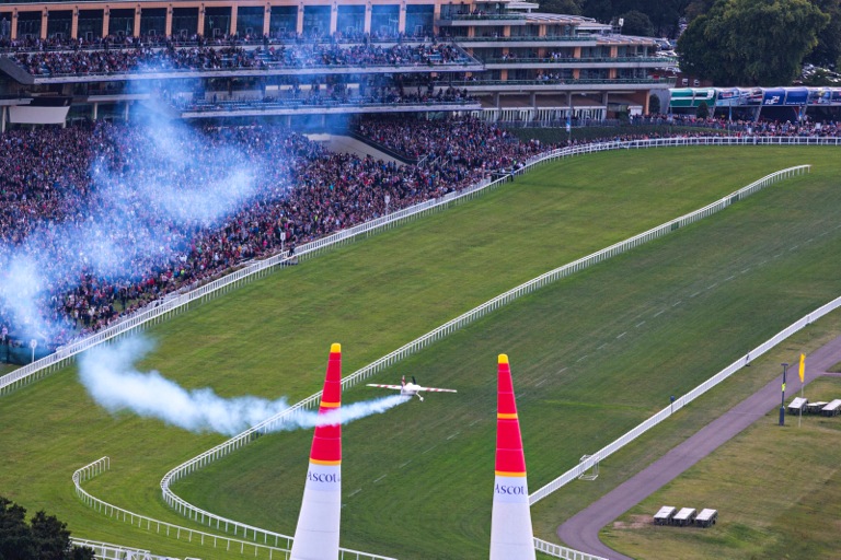 Bonhomme, who also wears race number 55, now has 41 world championship points to Arch’s 43. He won the Ascot race with its first-ever standing start with a flawless performance despite difficult and changing English winds that gusted up to 30 knots and caused many pilots problems. The spectators in the capacity crowd were on their feet watching the spine-tingling action from the grandstand and grassy terraces and they roared their approval when Bonhomme stopped the clock in the Final Four with a sensational time of 1:11.579. Lamb, celebrating his 58th birthday, was a close second and got his third straight podium with a sterling time of 1:11.750, which was good enough for 10 points that also put him into the thick of the championship battle with 35 points overall.