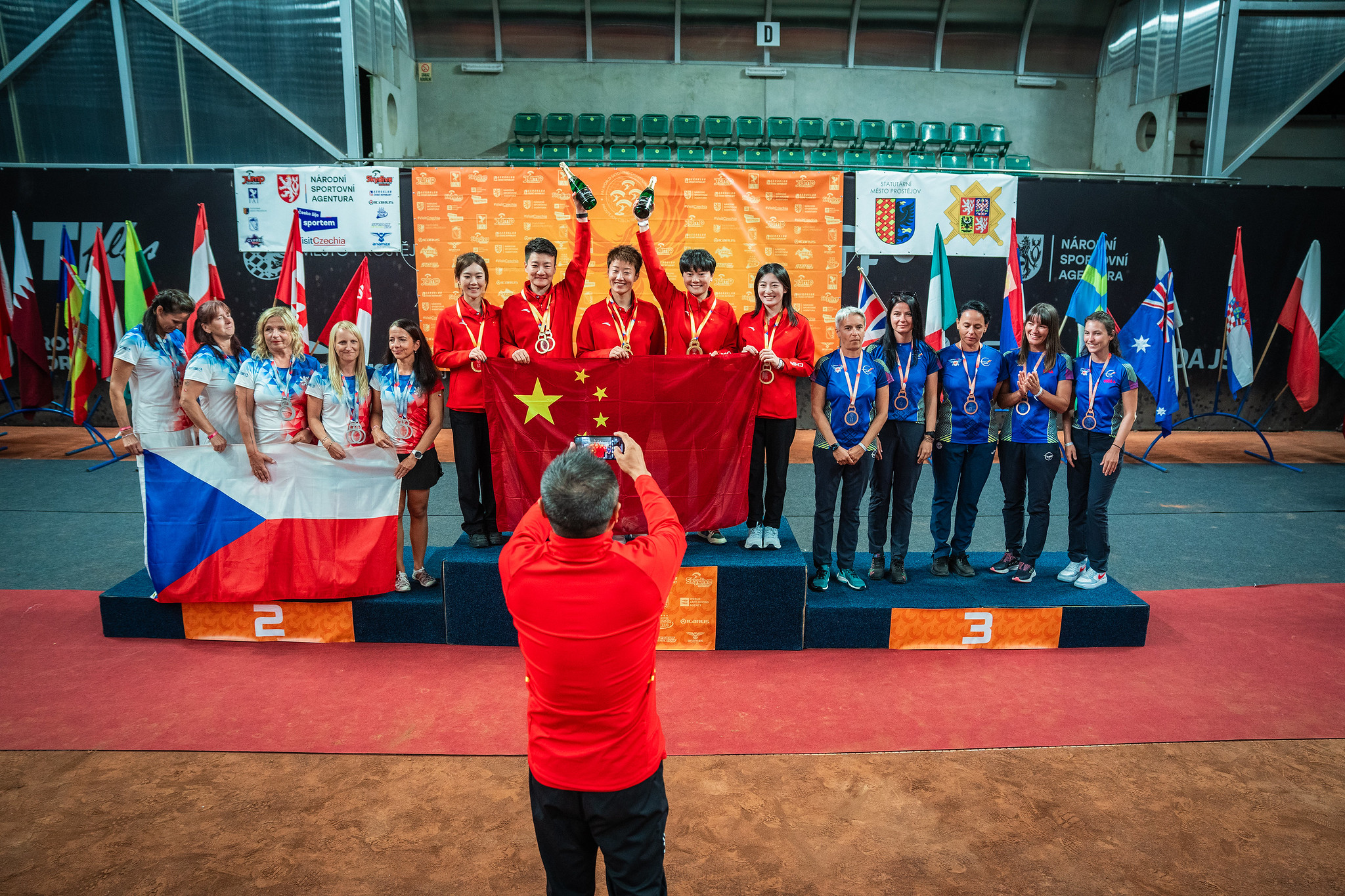 The Awards Ceremony and closing banquet took place in the evening, at the Hotel Tennis Club in the town. It was a joyous occasion, with the athletes resplendent in their countries’ colours. After speeches, the winners were called to the podium and presented with the trophies and medals, gold, silver and bronze. China, Qatar and Germany featured, with China being predominant in Style and Accuracy events and Qatar in Canopy Formation.