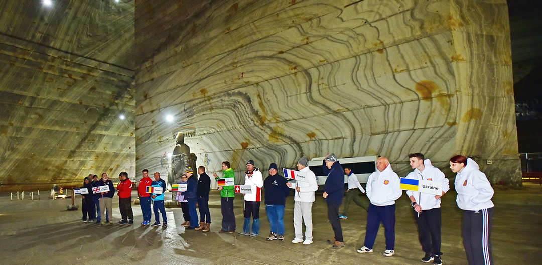 While most FAI air sports events gaze skyward, this competition takes place way below the earth's surface in a former salt mine, whose vast chambers enjoy a unpolluted and stable atmosphere in which these ultra-delicate indoor model aircraft can make astonishingly long duration flights, thanks to the constant temperature conditions and complete absence of wind.