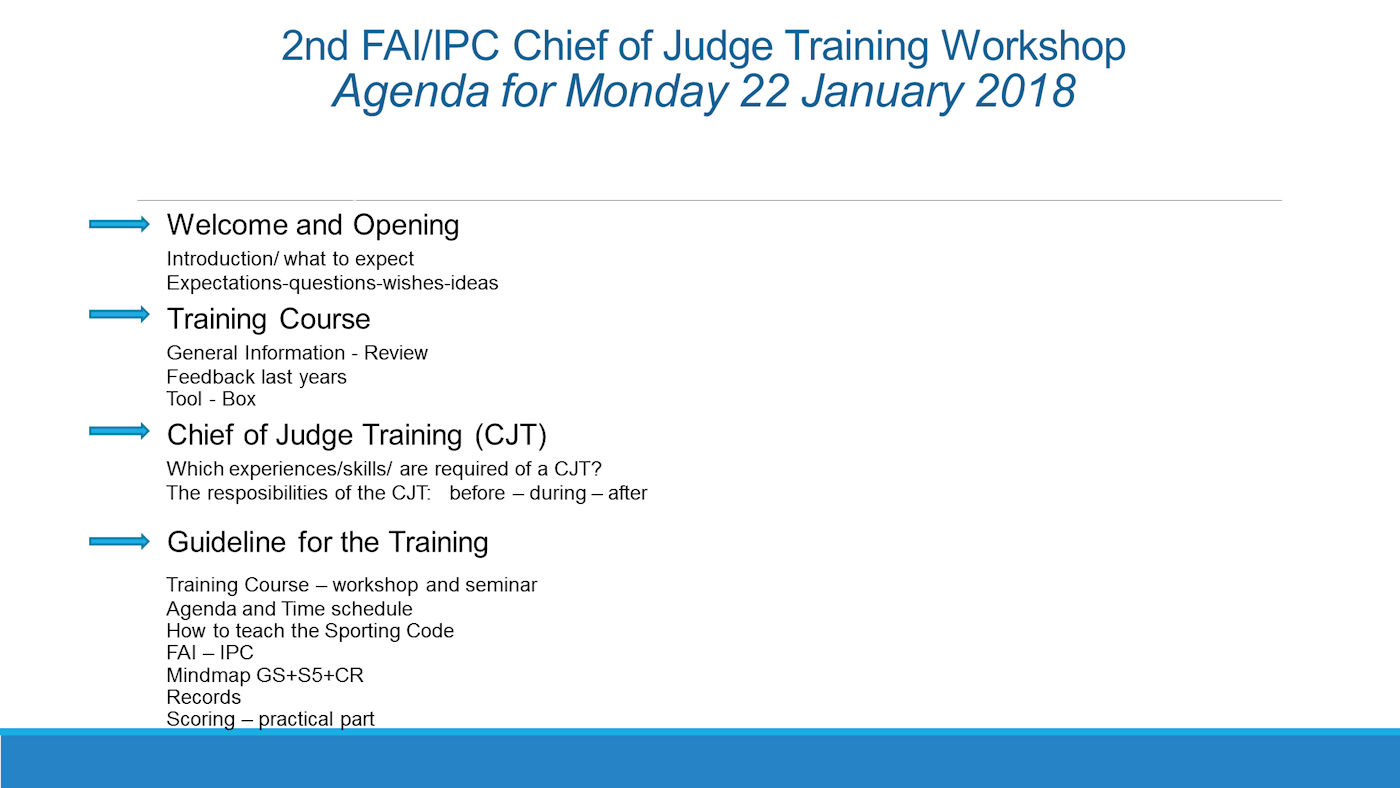 Following the success of the inaugural Chief of Judge Training Workshop that Karla Cole devised and hosted in Frankfurt 2016, an over-subscribed second workshop is being held in Sofia, Bulgaria. The attendees are all qualified to train future FAI judges, but this Workshop - a hands-on experience - has been designed to not only hone their acquired skills but to ensure that future Judge Training Courses are uniform in content and structure.