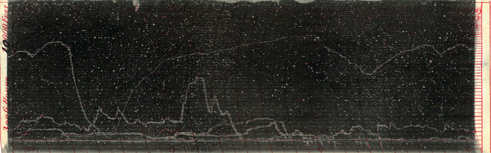 The original trace, which together with other original documents from the record flight are today held at FAI headquarters in Lausanne, shows that Lindbergh flew much of the flight at low altitude. He climbed higher about one-third of the way through the flight, to avoid storm clouds.