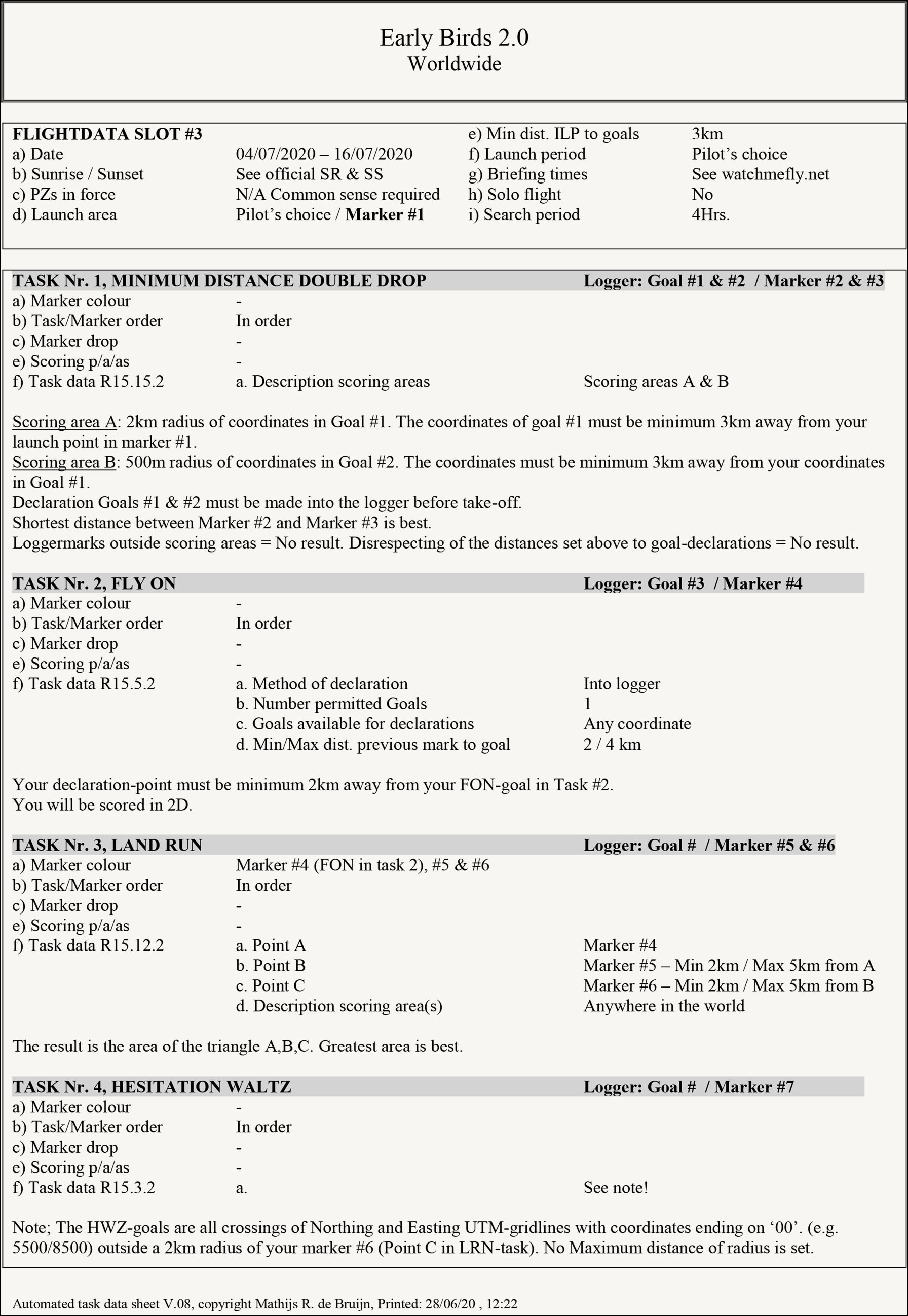 For the first task sheet, we keep it simple, using basic tasks including a Pilot Declared Goal, double Hesitation Waltz, and a Fly-On in between. The double HWZ consists of different targets from which one can choose to approach and score. To determine the points - and this worldwide - we use a certain distance, calculated under certain degrees from the individual starting point.