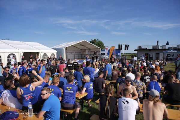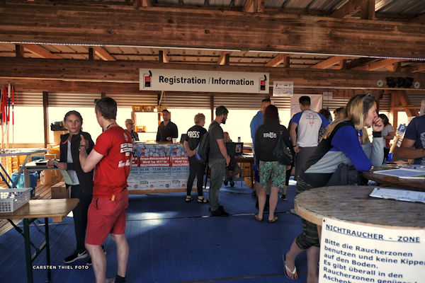 The general briefing by the organiser welcoming everyone to this Championships and thanking all for coming, it is an excellent turnout and exceeds the number of teams that entered in 2011 (the last time this organiser held a European Championships and World Cup).  He was followed by Dr. Rainer 'Exi" Hoenle, IPC President and also Meet Director for this competition.  He explained the plan for the start of the competiton at 9.00 am tomorrow, starting with 4-Way Open, 4-Way Female and VFS - followed by a second round of each.  This should take us through to about mid-day when we would switch to CF 2-Way, AE and Speed skydiving with the aim to complete two rounds of all events before stopping at 16.30 in order to change and get to the Opening Ceremony to be held in the Centre of Saarlouis starting at 18.00.
