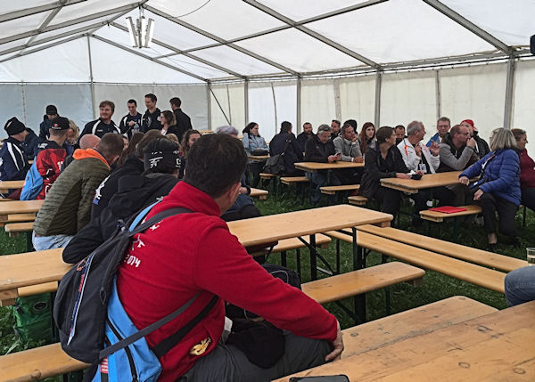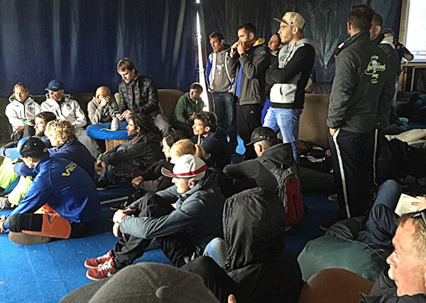 Rina then called for questions and suggestions from the floor and the Russians raised the old question about Grip definition, but France argued the current rules were clear and had not slowed them down at all. The discussion closed without support for the Russian position, and the meeting ended amidst the noise of the rain on the tent roof.