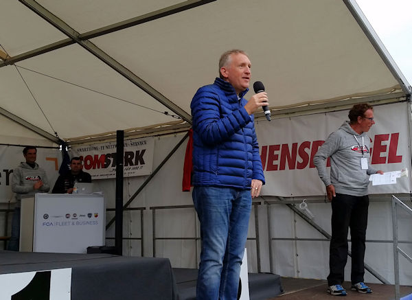 Helmut Bastuck took to the stage to start the proceedings for the Medal awarding ceremony, expressing his disappointment in not being able to complete all scheduled rounds. He went on to suggest that the blame fell at the feet of Patrik Lauer, County Commisioner of Saarlouis, who had promised fine weather at the Opening Ceremony! Helmut invited Patrik to address the audience, where after apologising profusely for his failed promise, he received a rapturous applause when he said he'd donate 50 litres of beer by way of compensation!