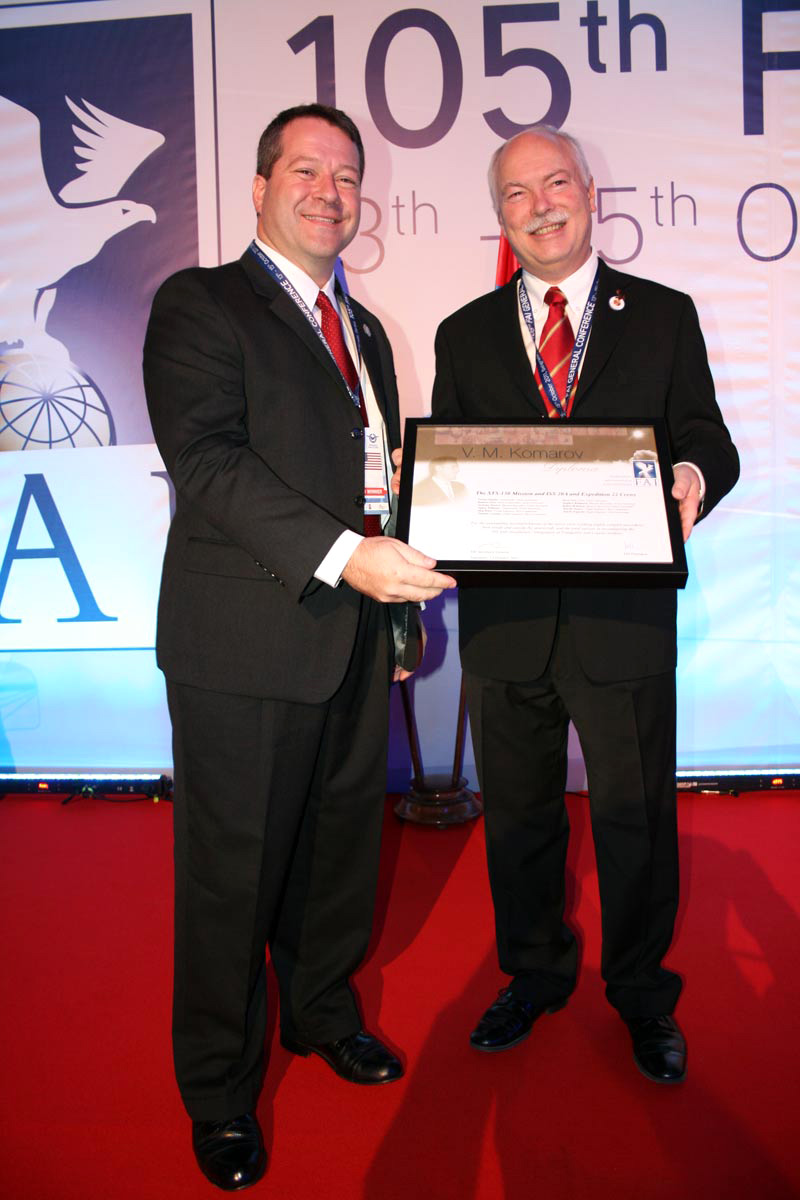 This Diploma was established by the FAI in 1970 to honor the memory of Soviet Cosmonaut Komarov who participated in the world record space flight of Voskhod 1 in 1964, and who lost his life while serving on a cosmic flight. It may be awarded annually to astronauts, members of multi-seater crews, for outstanding achievements in the field of exploration of outer space in the previous year. The maximum number of crews to be recognized annually shall be three.