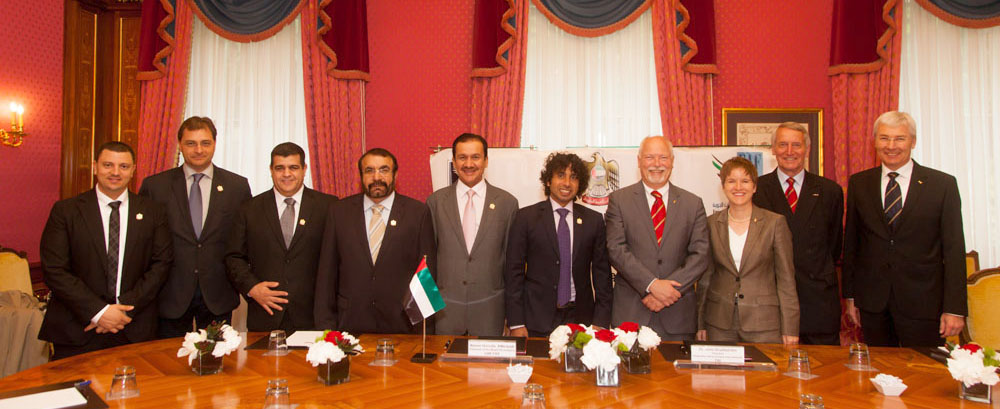 A meeting between FAI’s representatives and a delegation from the UAE was held on Wednesday in Lausanne, Switzerland, where final discussions led to the signature of a Memorandum of Agreement by Dr. John Grubbström, FAI President, and His Excellency Nasser Al Neyadi, President of the Emirates Aerosports Federation (see photo above).
