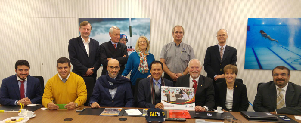 The FAI Executive Board and the organisers of the FAI World Air Games Dubai 2015, including Event Director H.E. Youssif Al Hammadi, held a joint meeting on Saturday at the FAI Head Quarters in Lausanne, Switzerland, following the success of the Federation's flagship event in December.