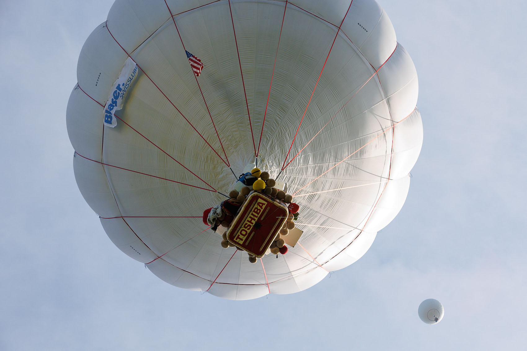 Each balloon accommodates a team of two pilots in a wicker basket of about 1,2sqm. Using only the hydrogen pumped into the balloons before take-off to remain aloft, pilots navigate their balloons using nothing but the winds’ natural movements of the air. Therefore, together with their ground crew, they must constantly analyse weather conditions and find out which wind currents will carry them the furthest. Indeed, because balloons can’t be steered like other vehicles, only a change in altitude allow them to “catch” a specific current to change direction.