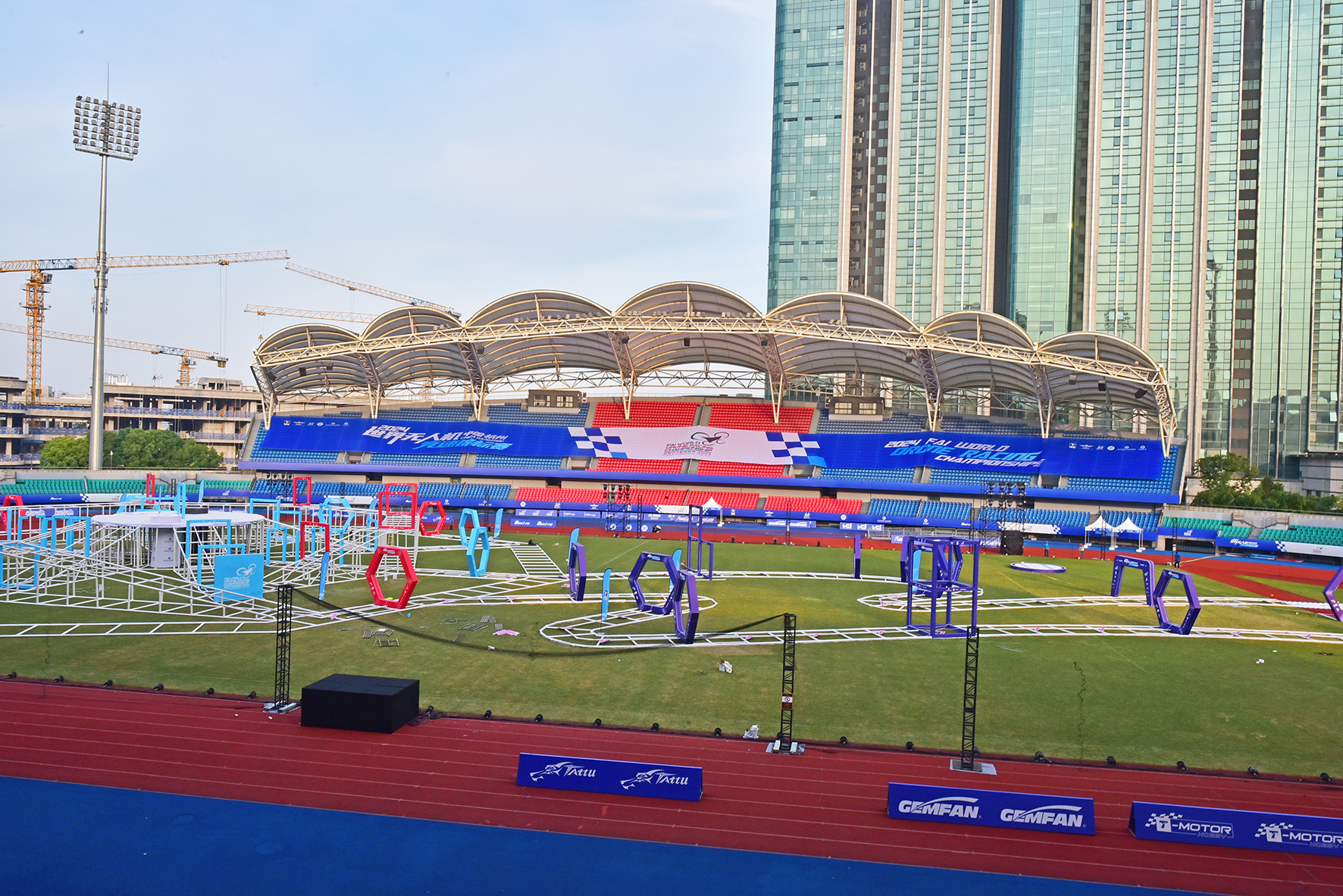 The 2024 FAI World Drone Racing Championship will take place at Hangzhou's Shangcheng District Sports Centre. 111 racers from 32 nations will vie for the World Champion title. The race track's design draws inspiration from the Qiantang River and the Hang Zhou Bagua Tian site, a royal land during the Song Dynasty. Stretching about 600 m, it features 43 gates and 12 L-shaped obstacles. The octagon extends across three levels, reaching a maximum height of 4m.