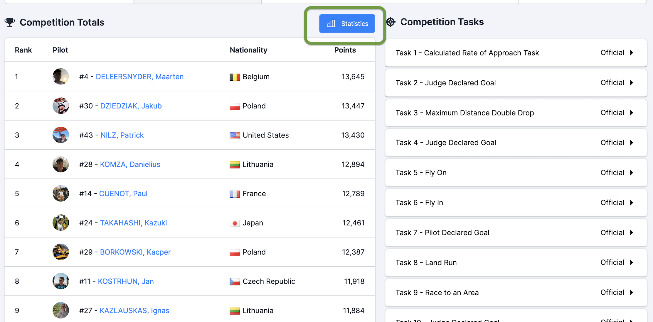 At the moment the scores of top pilots are still close to each other, and anyone has a good chance of going up the ranking, so I want all the pilot to do their best.