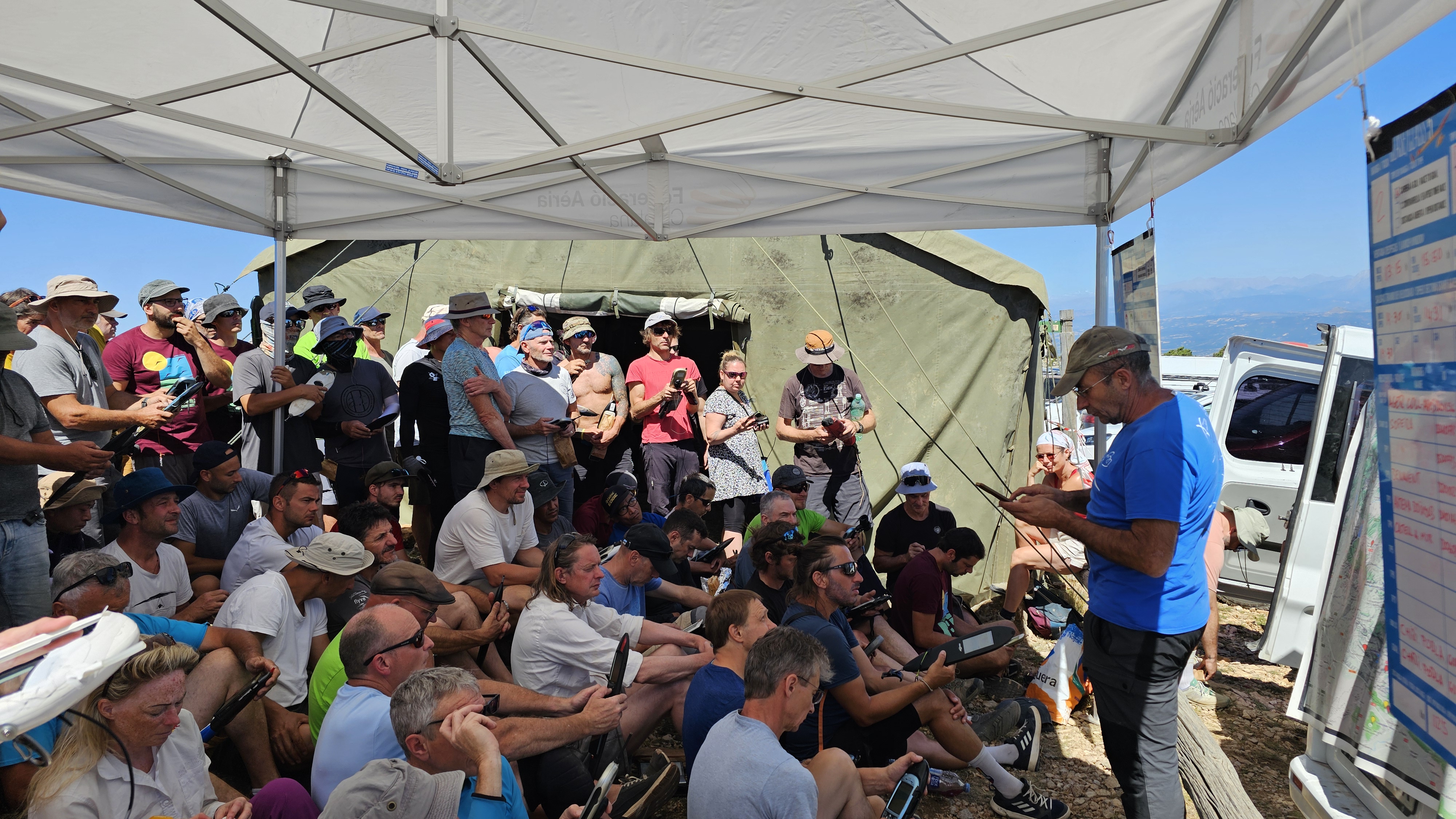 So far, two tasks have been completed: 121 km and 112 km, both finishing at a lake beach much appreciated by the pilots who made it there. Today’s task is a 130 km route toward Andorra, but the wind direction raises doubts about many pilots reaching the goal.
