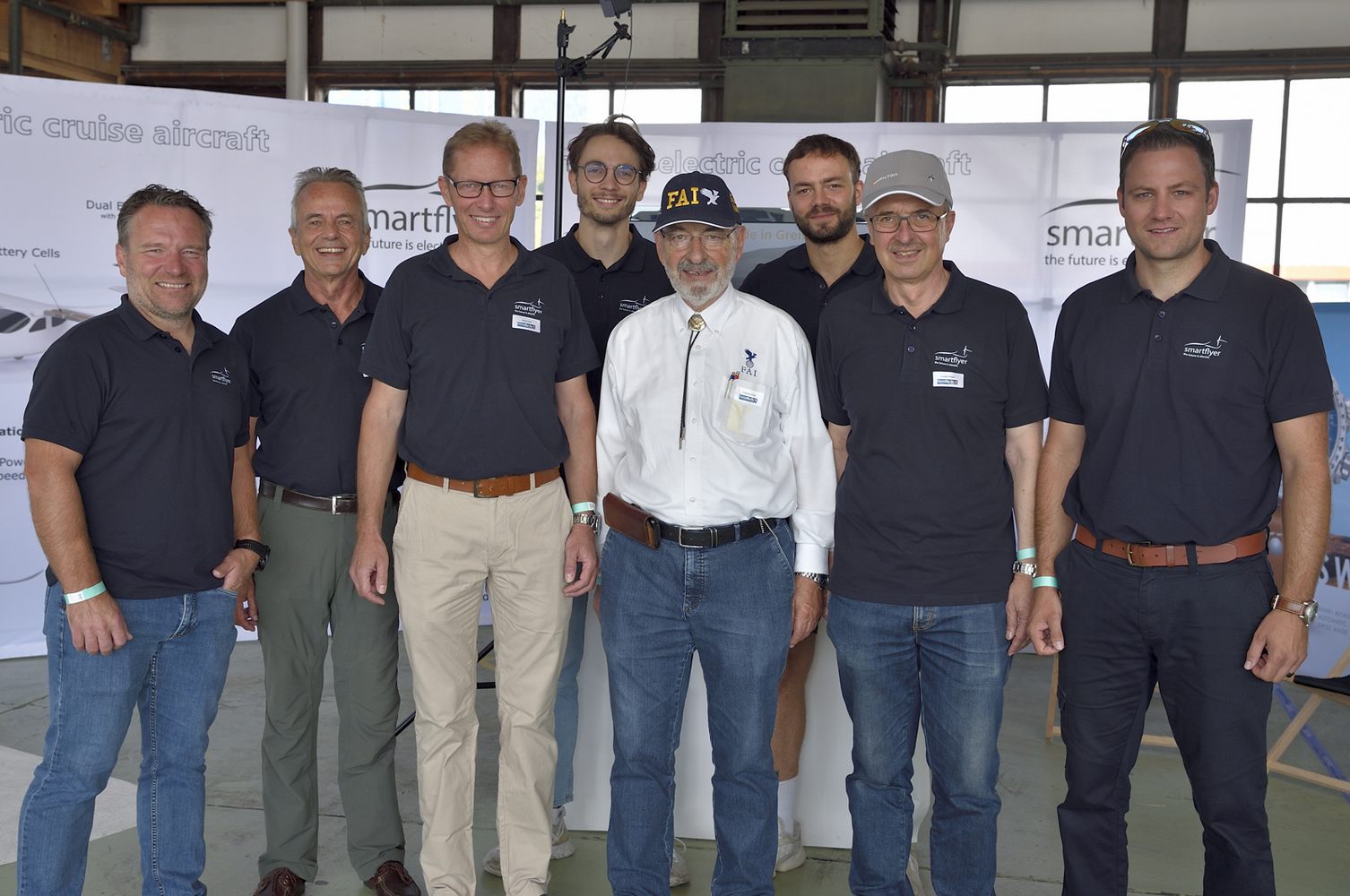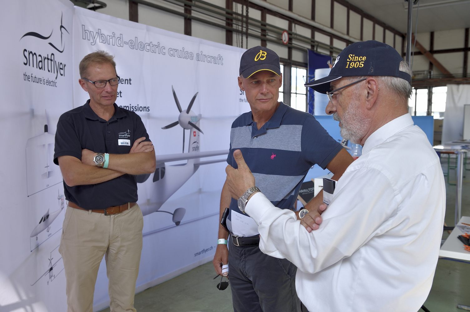From left to right: Rolf Stuber (Smartflyer); Bertrand Piccard (Patron of Electryfly-In); Alfons Hubmann (FAI CIACA & Smartflyer)