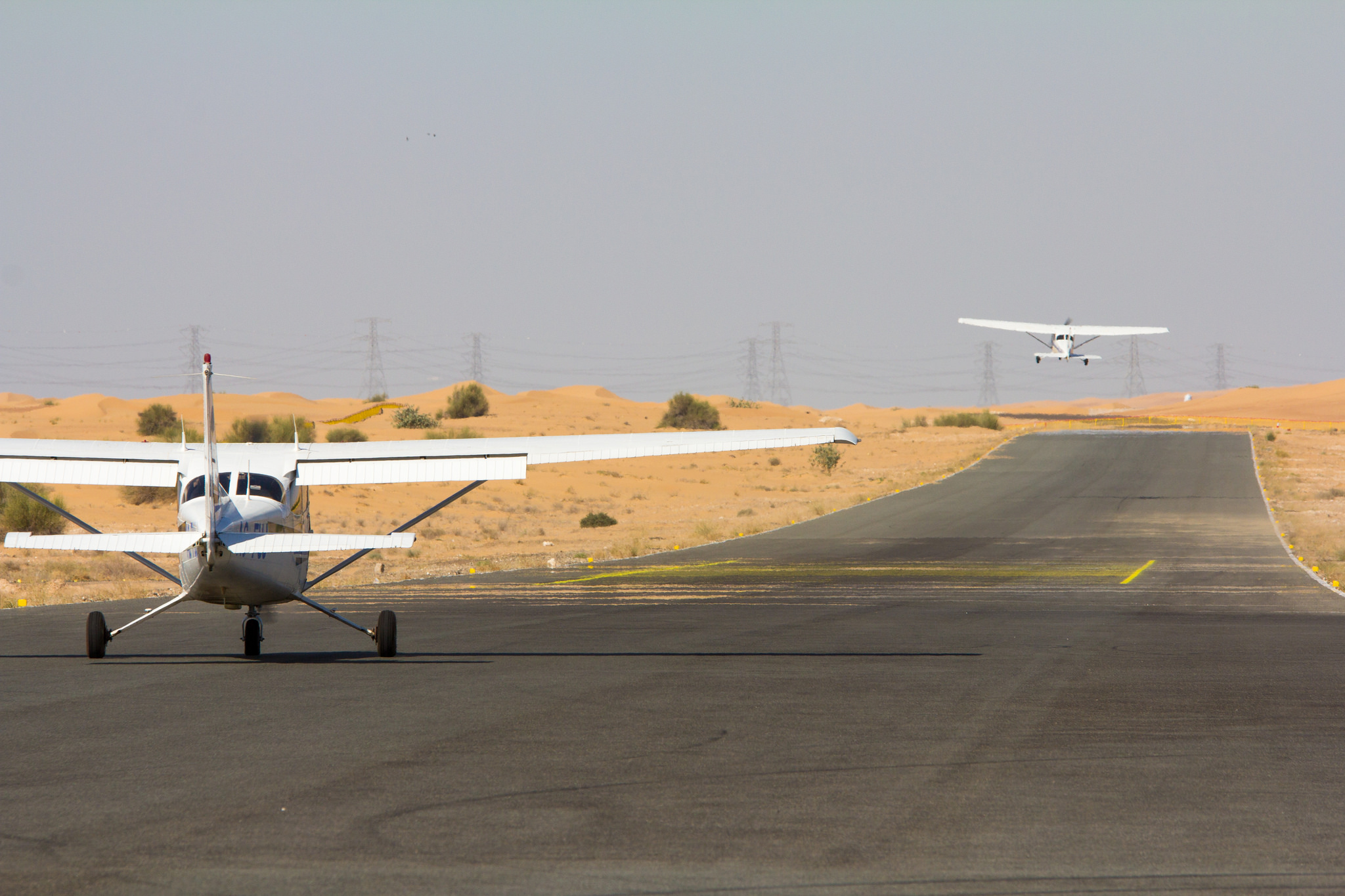 The pair were among 14 teams competing in this new race designed to test piloting skills, held at the Desert Dropzone. Spectators followed the pilots as they flew the course via live tracking online.